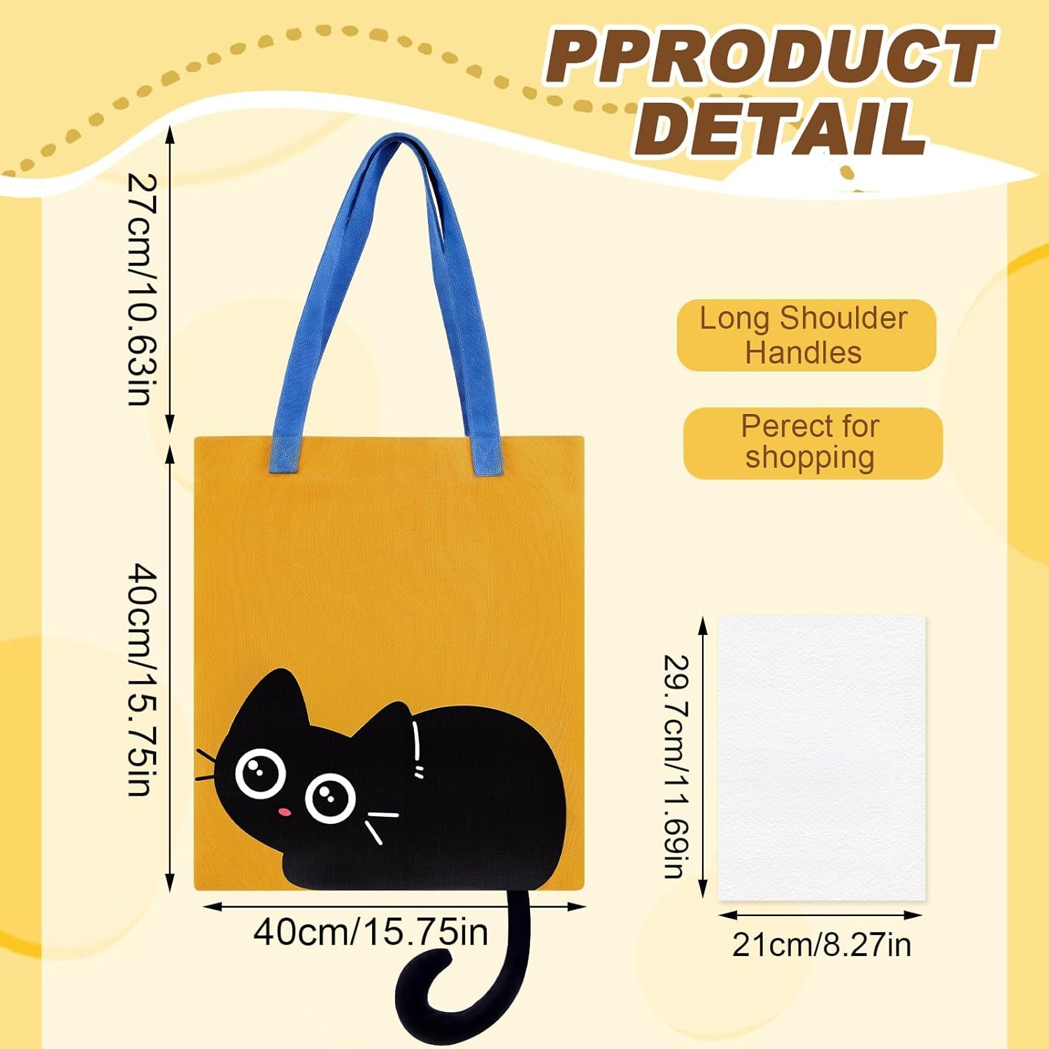 Bolso de lona mono con bolsillo interior para mujer, bolsa reutilizable de tela de algodón negra con patrón y cola de gato para comer, hacer la compra, gimnasio y playa