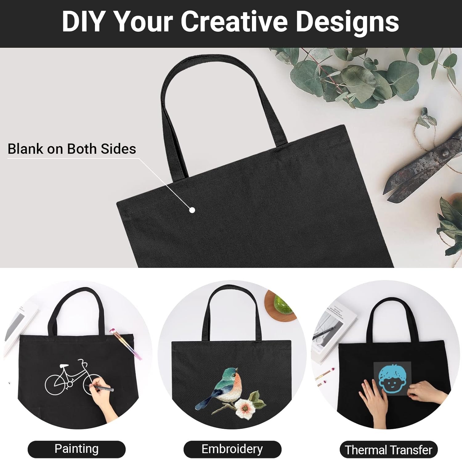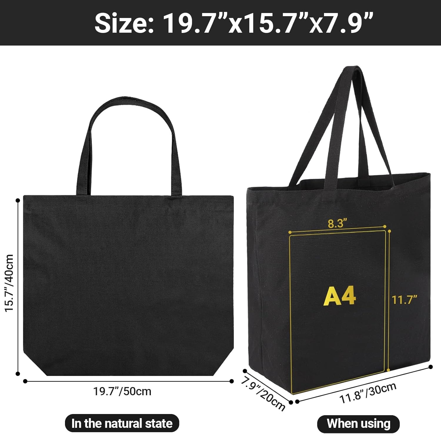 Grands sacs fourre-tout en toile, sac de courses réutilisable de 20×15 pouces, bac de courses en tissu blanc naturel robuste avec gousset et épaule inférieures pour la décoration bricolage (复制)