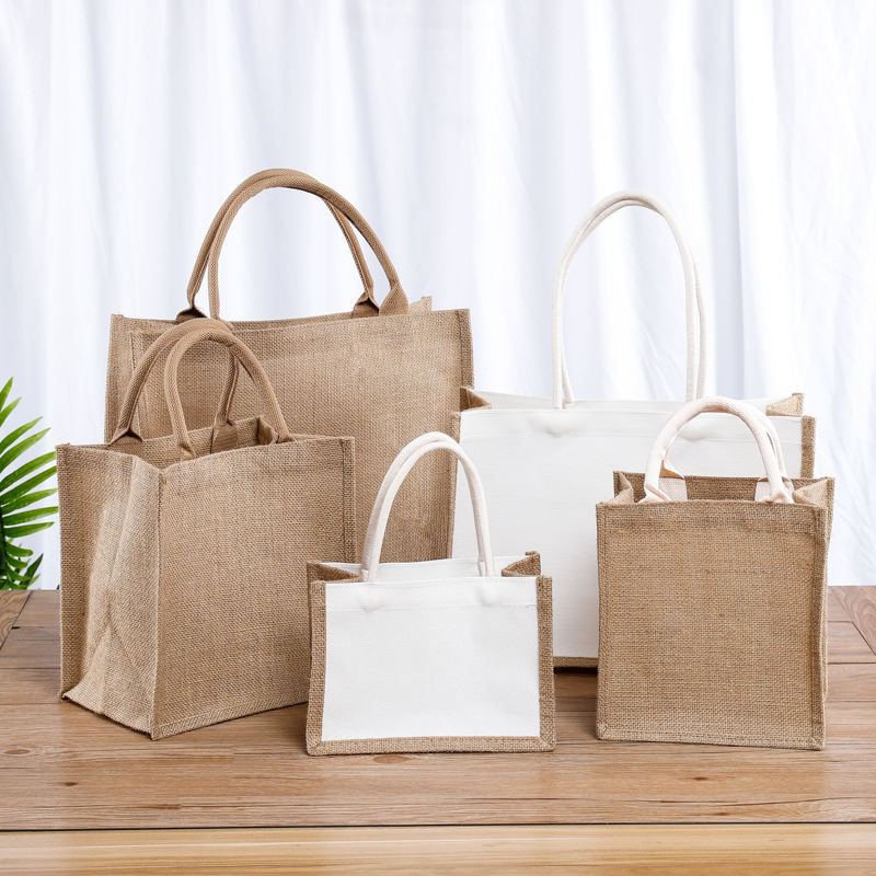 Customized Environment Friendly Jute Linen Handbag Beach Bag Shopping Foldable Bag Jute Bags Wholesale