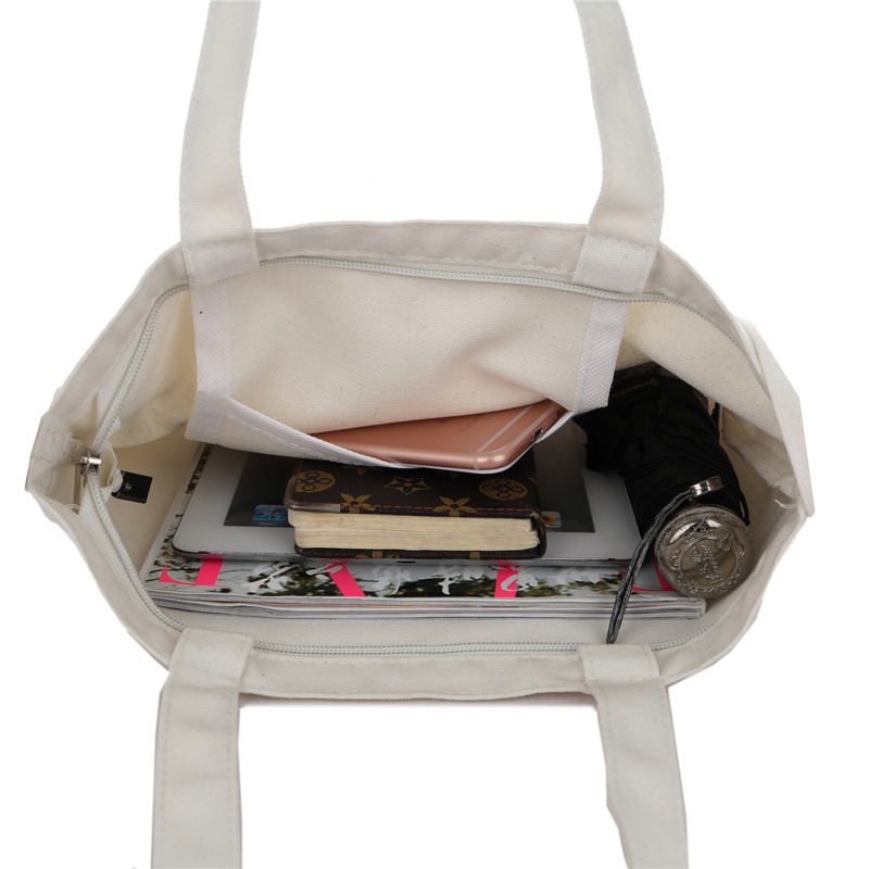 Hot selling Designer High Quality Inner Pocket Magnet Buckle 100 percent Cotton Double Handle Canvas Cotton Bag