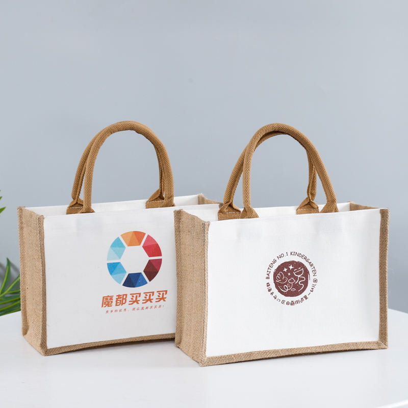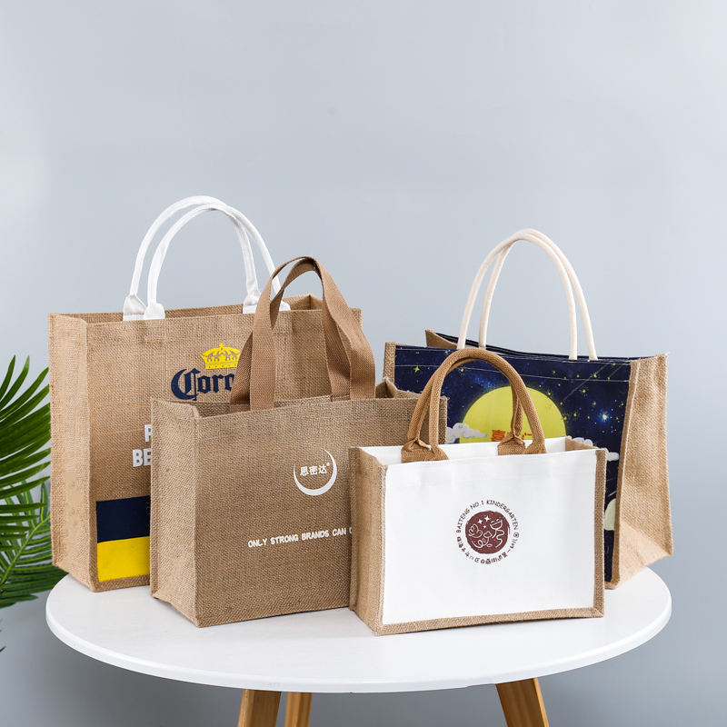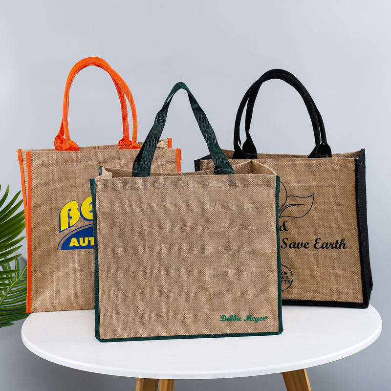 Custom Logo Print Eco Reusable Grocery Women Hand Beach Shopping Tote Jute Bag