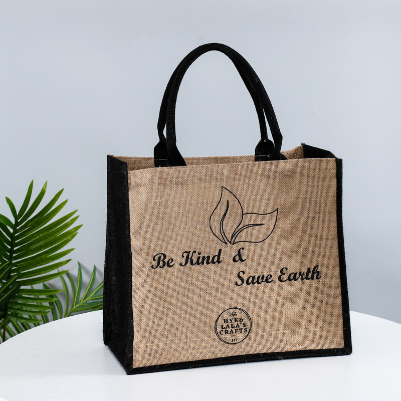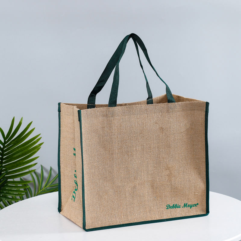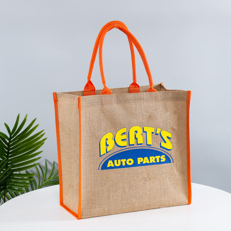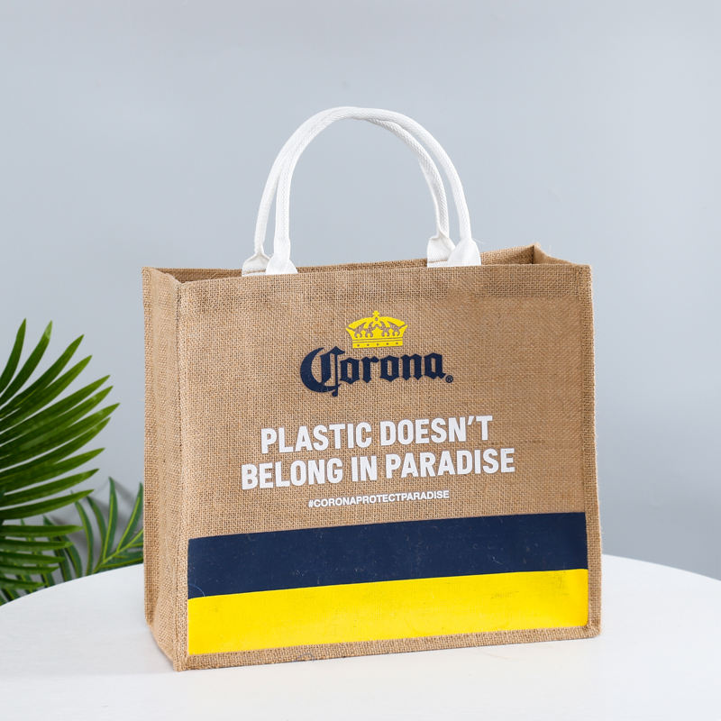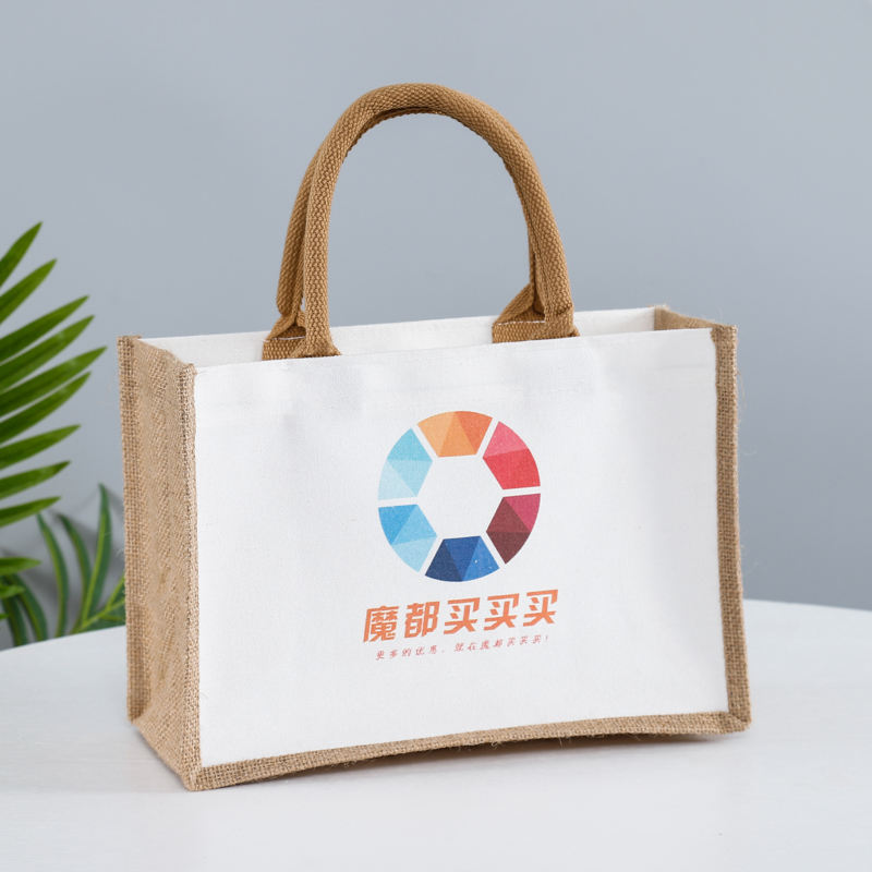 Custom Logo Printed Eco Reusable Natural Burlap Gift Shopping Jute Tote Bag