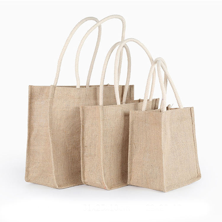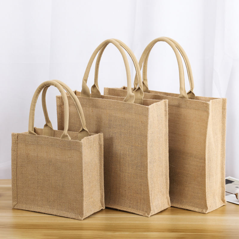 Customized Eco-friendly Bucket Shape Plain Natural Linen Jute Grocery Bag Portable Reusable Jute Shopping Bag