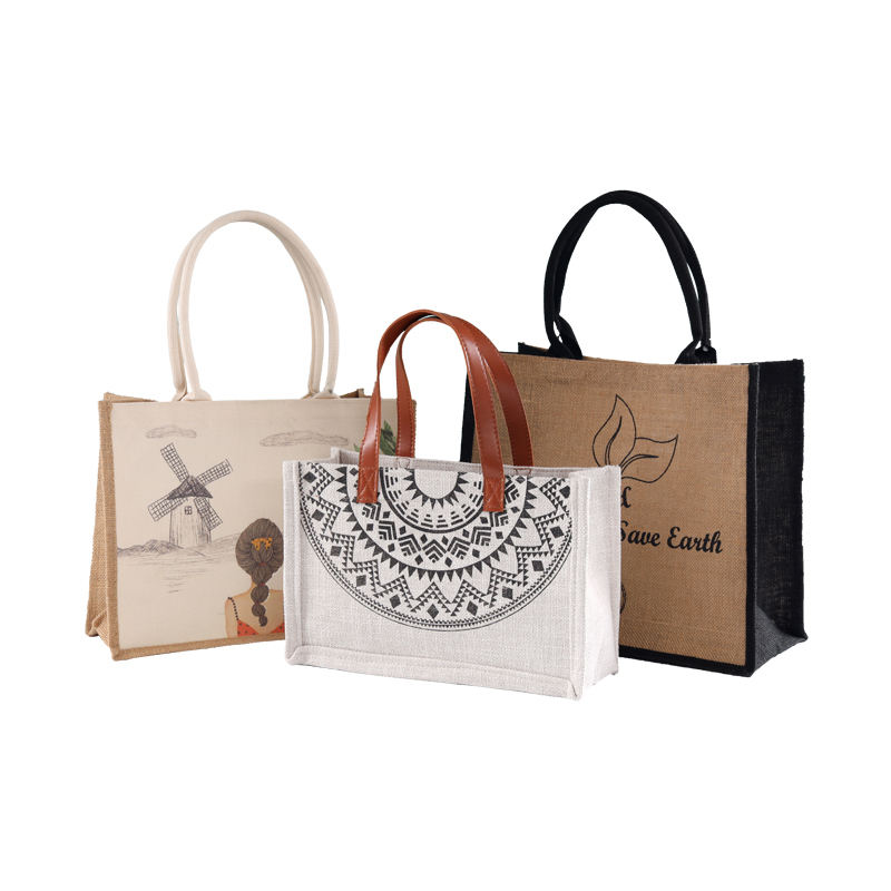 factory direct customized logo print eco friendly recyclable promotional laminated large capacity jute tote shopping bag