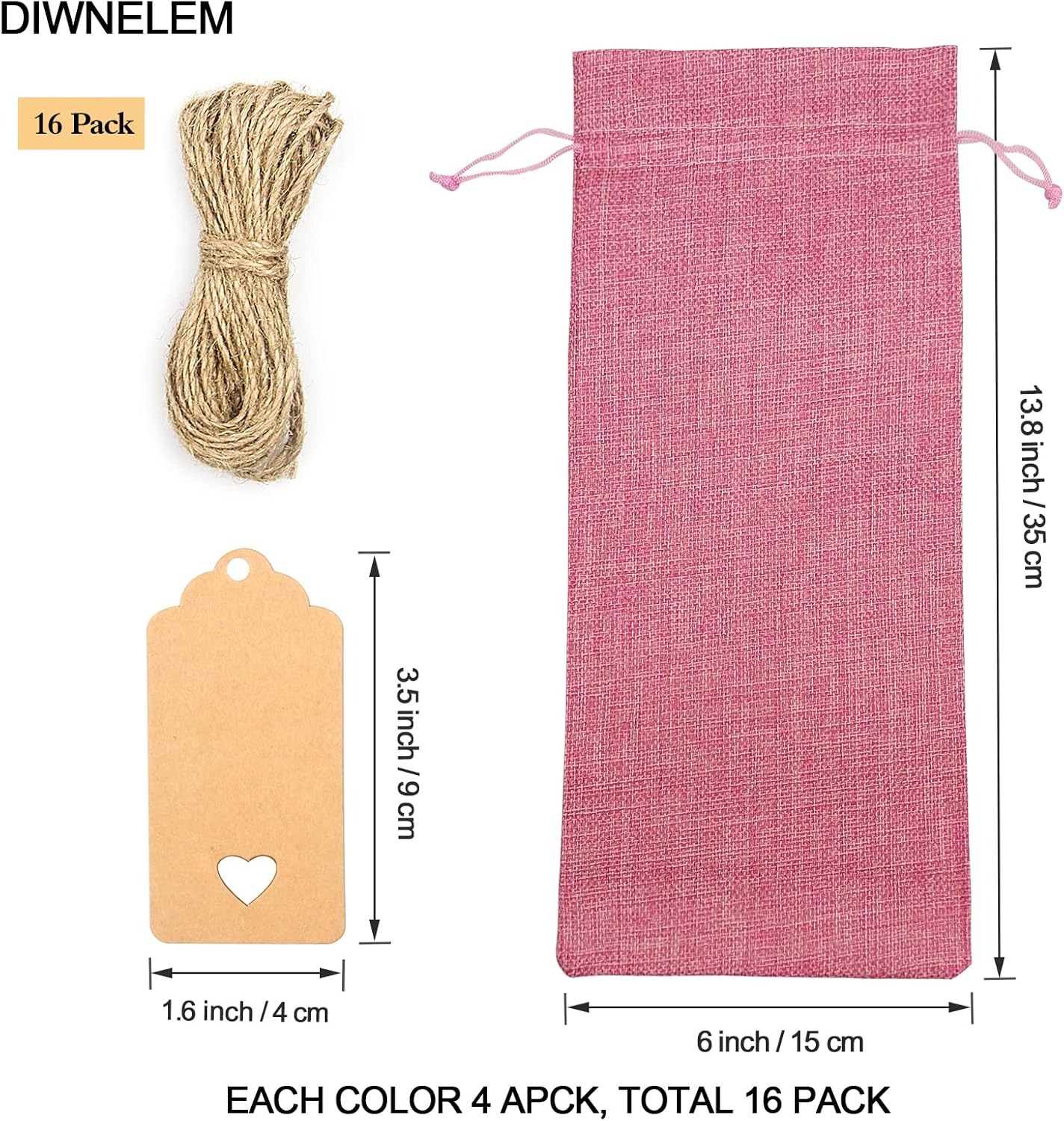 16 Pack Burlap Wine Bags, Jute Wine Gift Bags with Drawstring, Accommodates Regular 750 ml Bottles, Perfect for Weddings, Parties, Travel, Birthdays