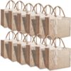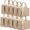 8pcs Burlap Tote Bag Set with Handles, Waterproof Reusable Blank Water Resistant Grocery Bags with Ribbon Large Jute Tote 15.35*6*12 In for Women Bridesmaid Gift Christmas Shopping Wedding Travel DIY