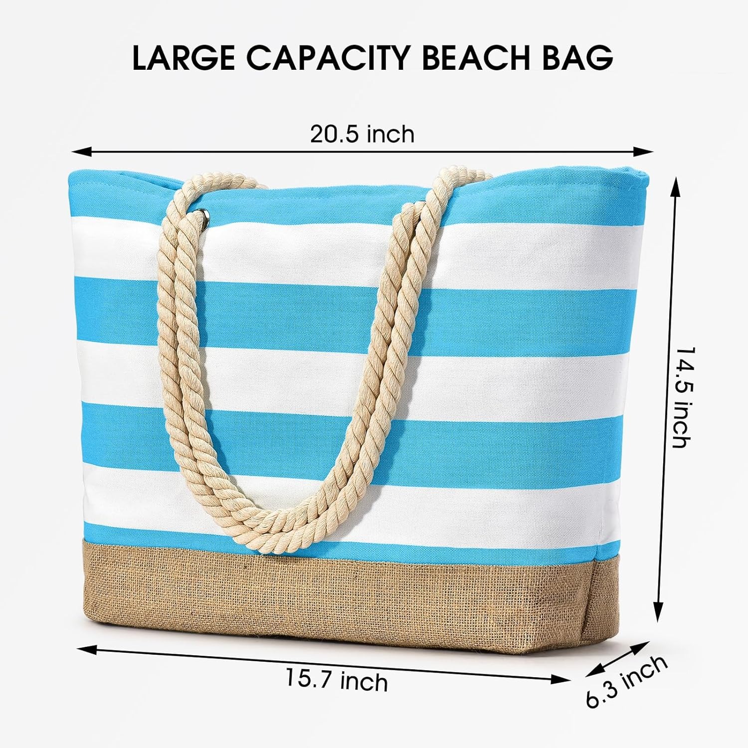 Beach Bags for Women Large Canvas Beach Tote Bag Beach Bags Waterproof Sandproof Swim Pool Bag Travel Essentials