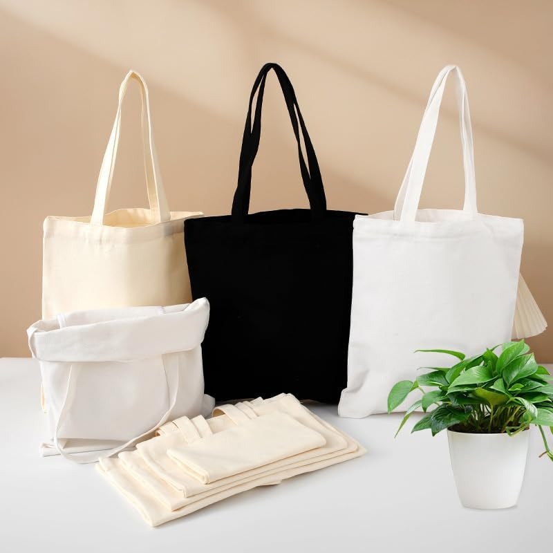 Blank Canvas Cotton Tote Bags, 2 Pcs Plain Reusable Grocery Shopping Cloth Bags for DIY, Gifts, Activity