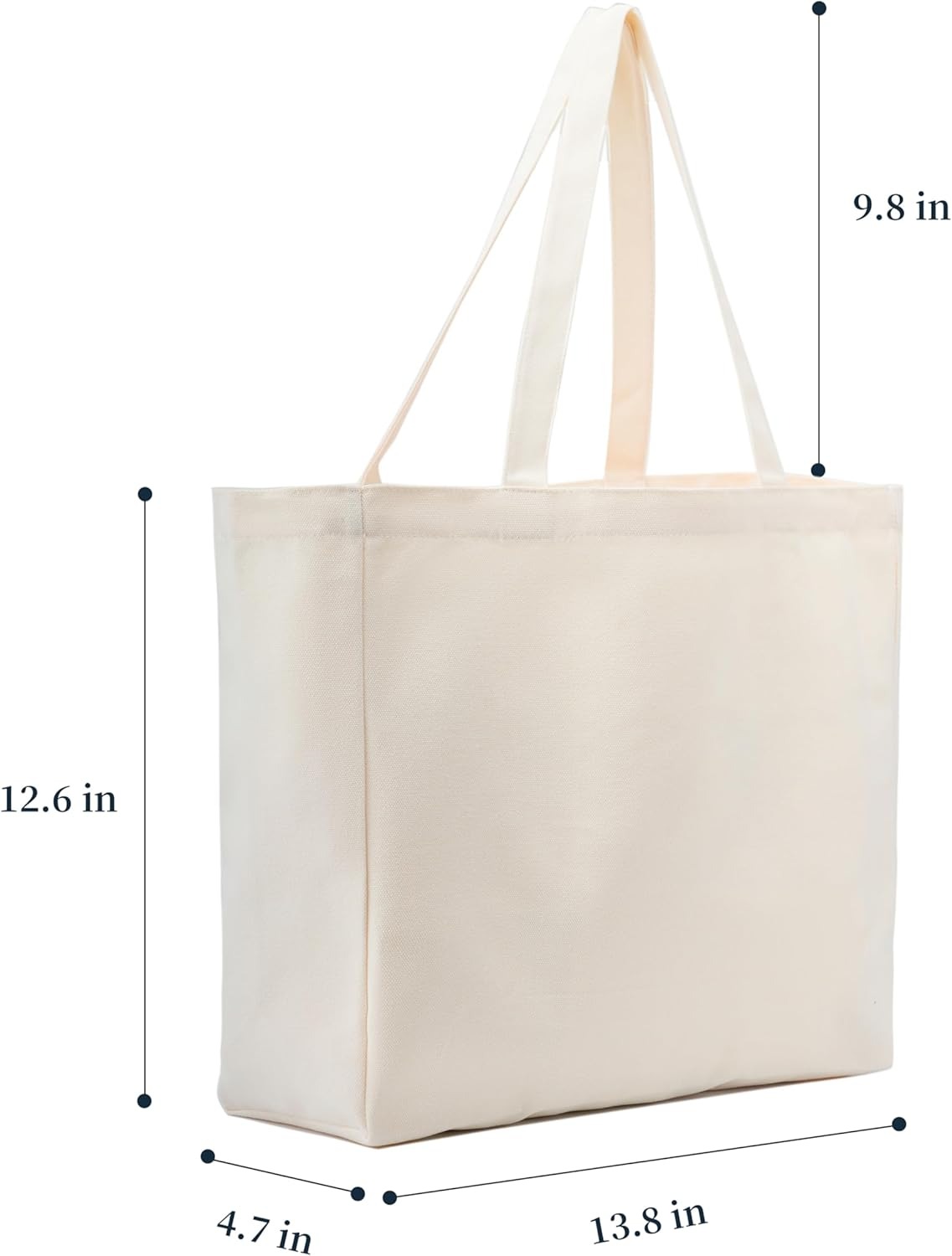 Blank Cotton Canvas Tote Bag, Lightweight Reusable Grocery Shopping Cloth Bag