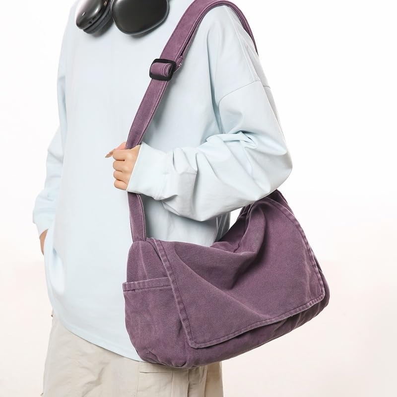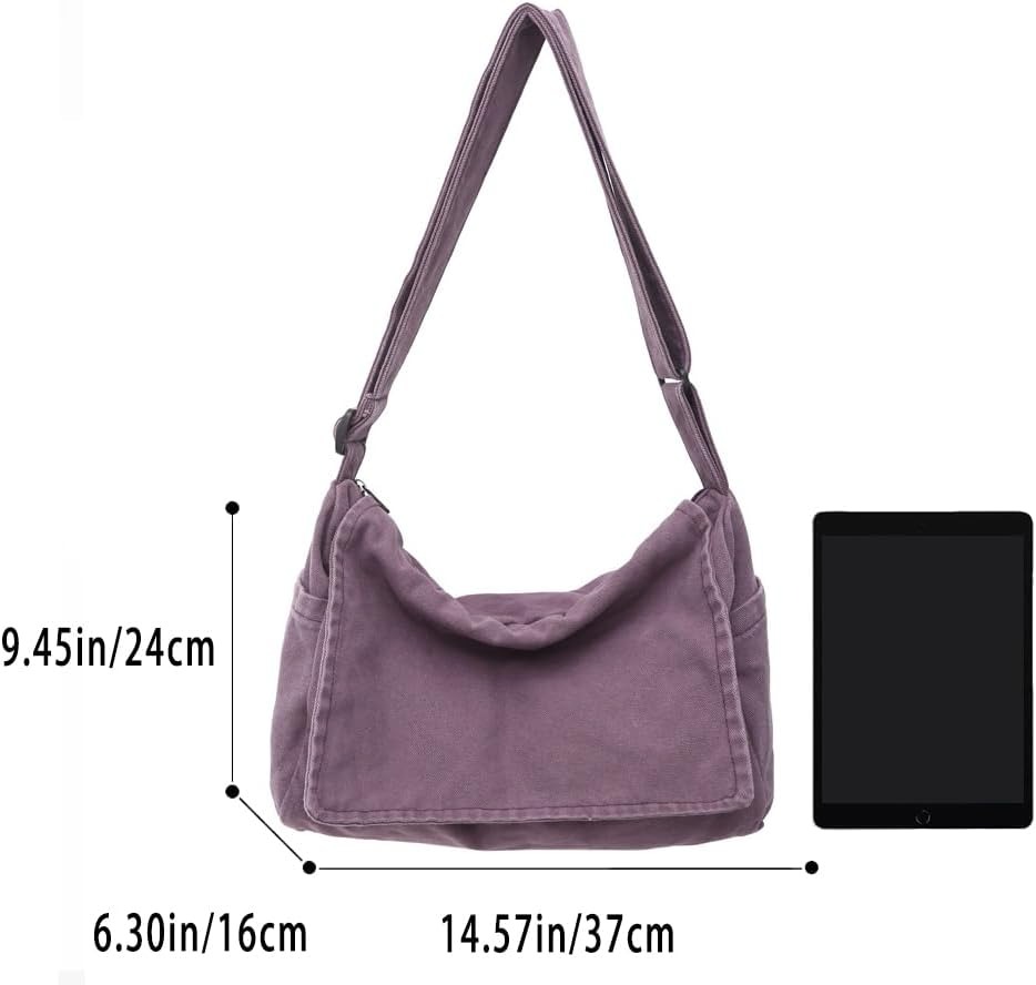 Canvas Messenger Bag Large Messenger Bags for Women Men Casual Canvas Crossbody Shoulder Bag with Multiple Pockets