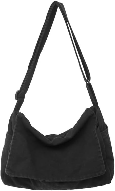 Canvas Messenger Bag Large Satchel Bag Travel Hobo Bag Casual Tote Shoulder Bag for Women and Men