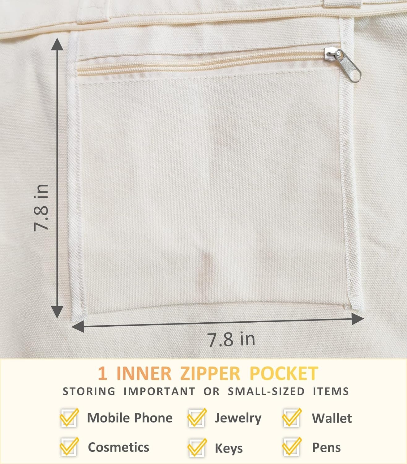 Canvas Tote Bag, Pockets, Zipper, Durable, Lightweight, Cotton Shopping Cloth Bag, Gifts