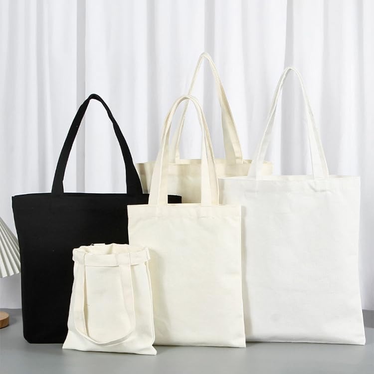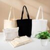 Canvas Tote Bags, Foldable Women Plain Bag Cotton Reusable Grocery Shopping Cloth Bags for Advertising Promotion Gift Activity(Black)