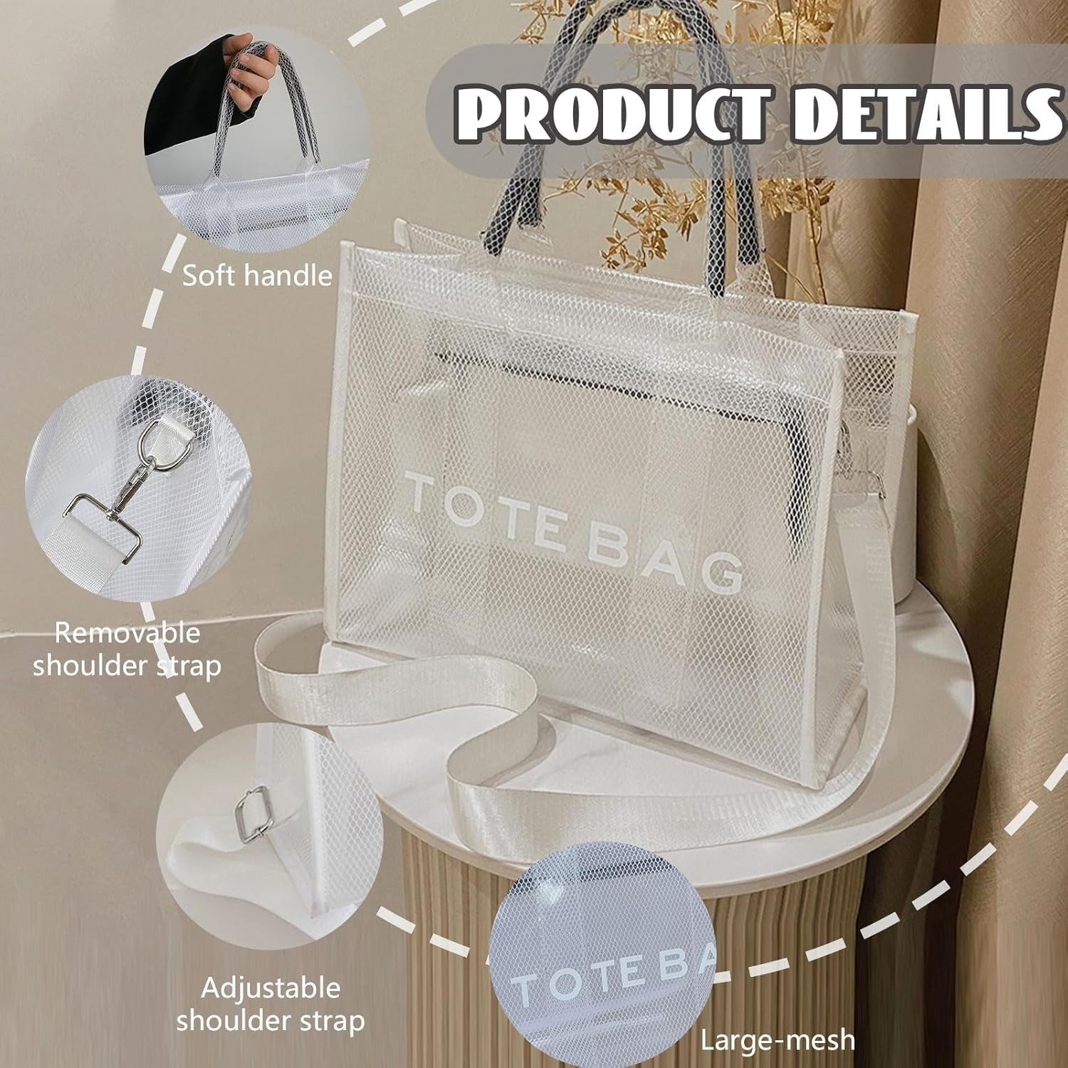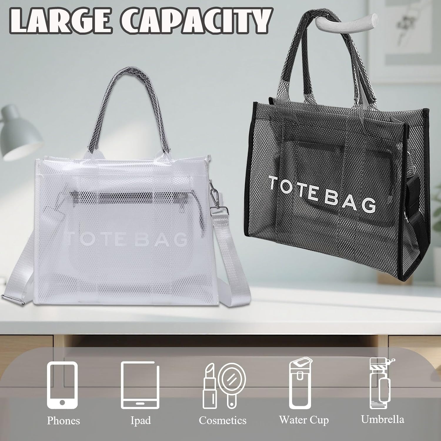 Clear Tote Bag for Women, Large Mesh Beach Bag, PVC Clear Crossbody Bags with Zipper, Stadium Bag for Travel Sports
