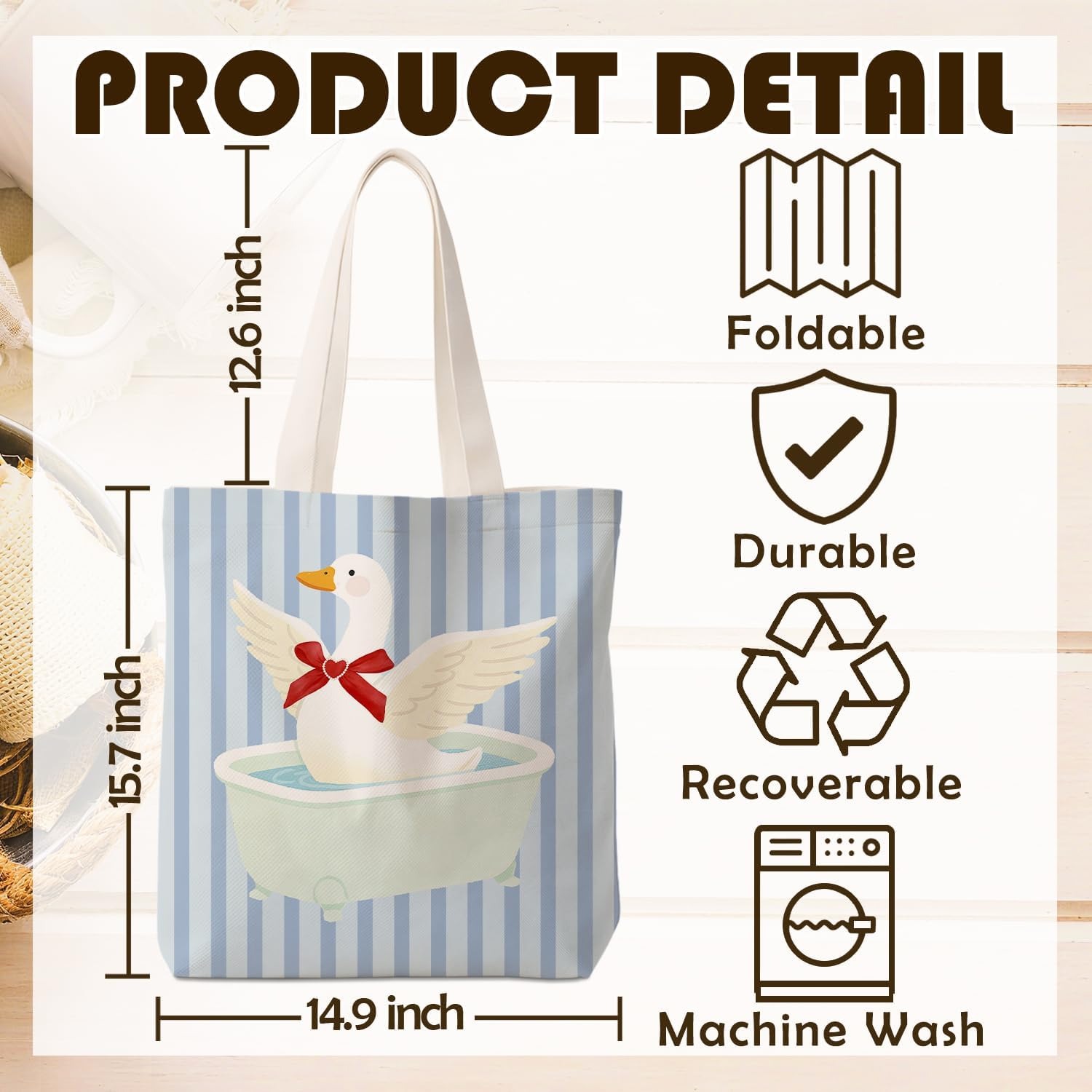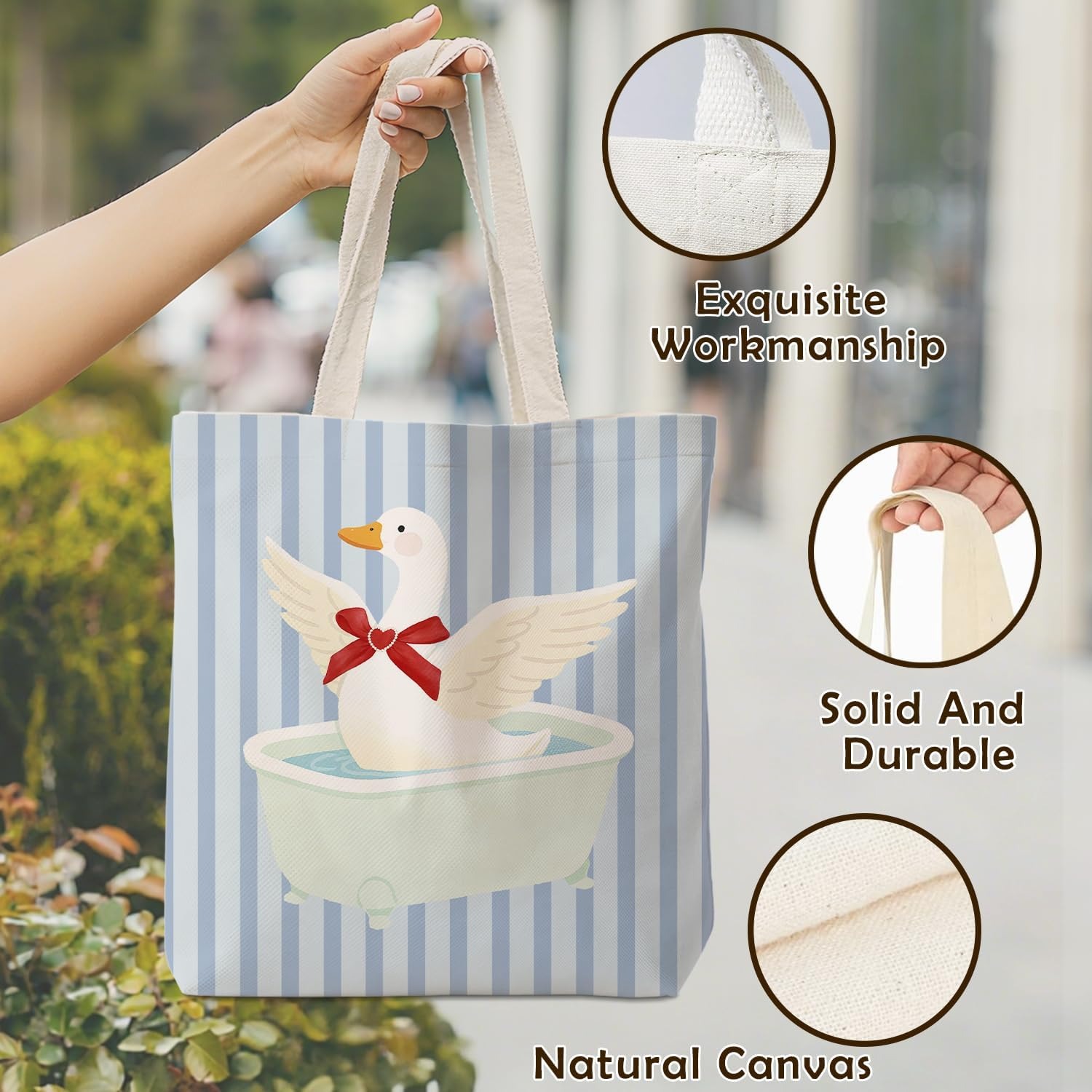 / Coquette Red Bow Goose Tote Bag for Women,Funny Wash Goose Canvas Tote Bag,Gifts for Goose Lovers,Blue Striped Aesthetic Reusable Shopping Grocery Bags Party Favors