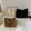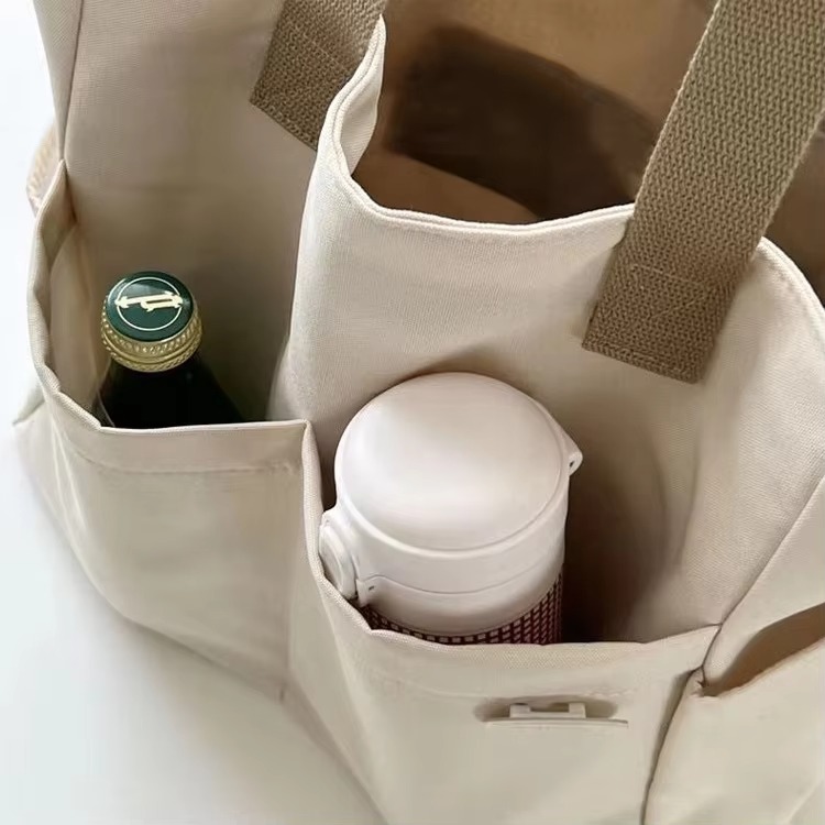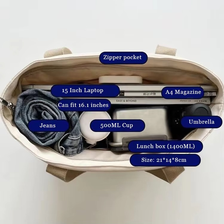 Customized printed logo large-capacity casual reusable canvas shoulder bag, cotton handbag, shopping beach bag with pocket