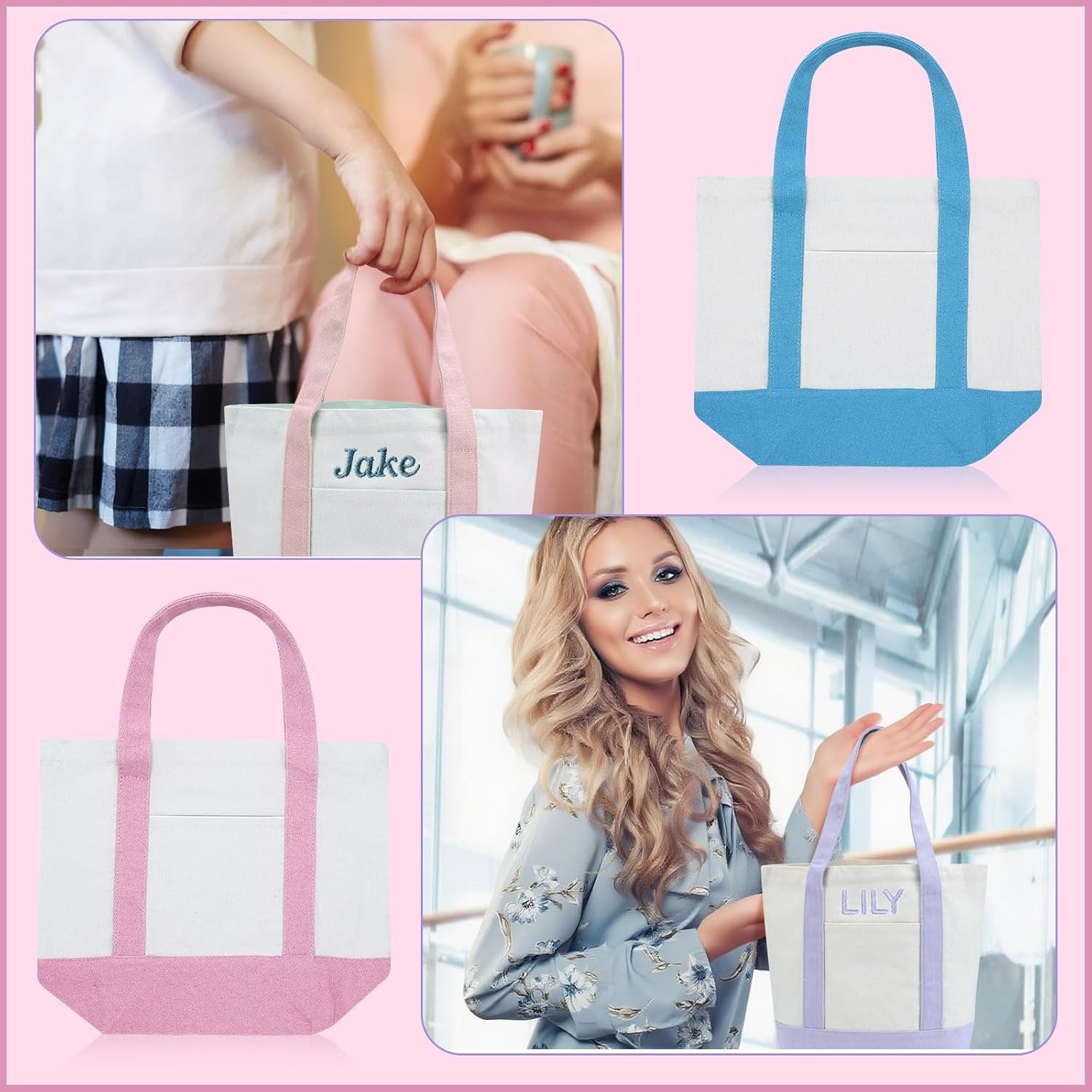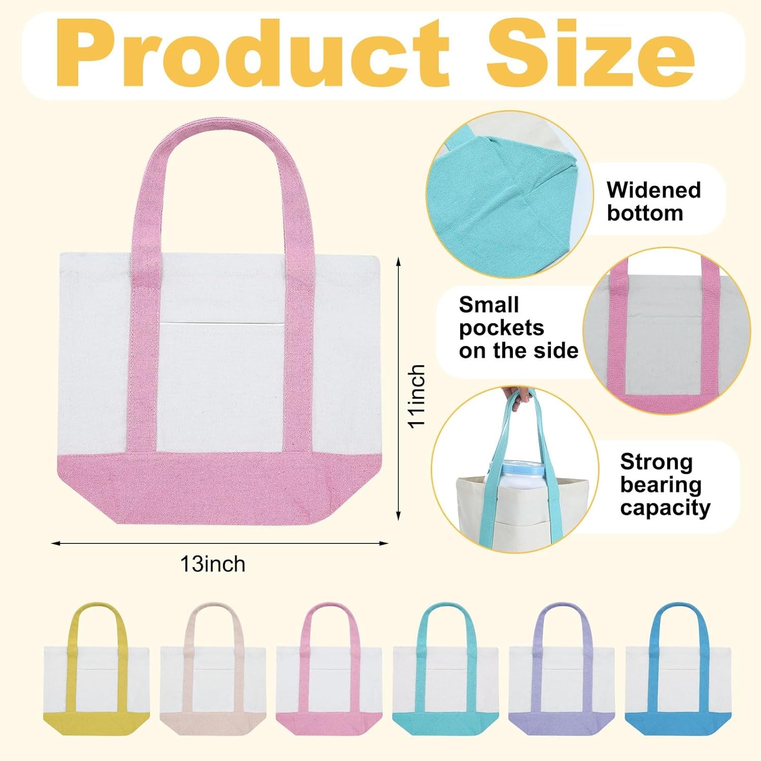 Eccliy Mini Canvas Tote Bags 13″ x 11″ x 6″ Small Tote Shopping Bag Bulk with Pocket Handle Blank Heavy Duty Reusable Canvas