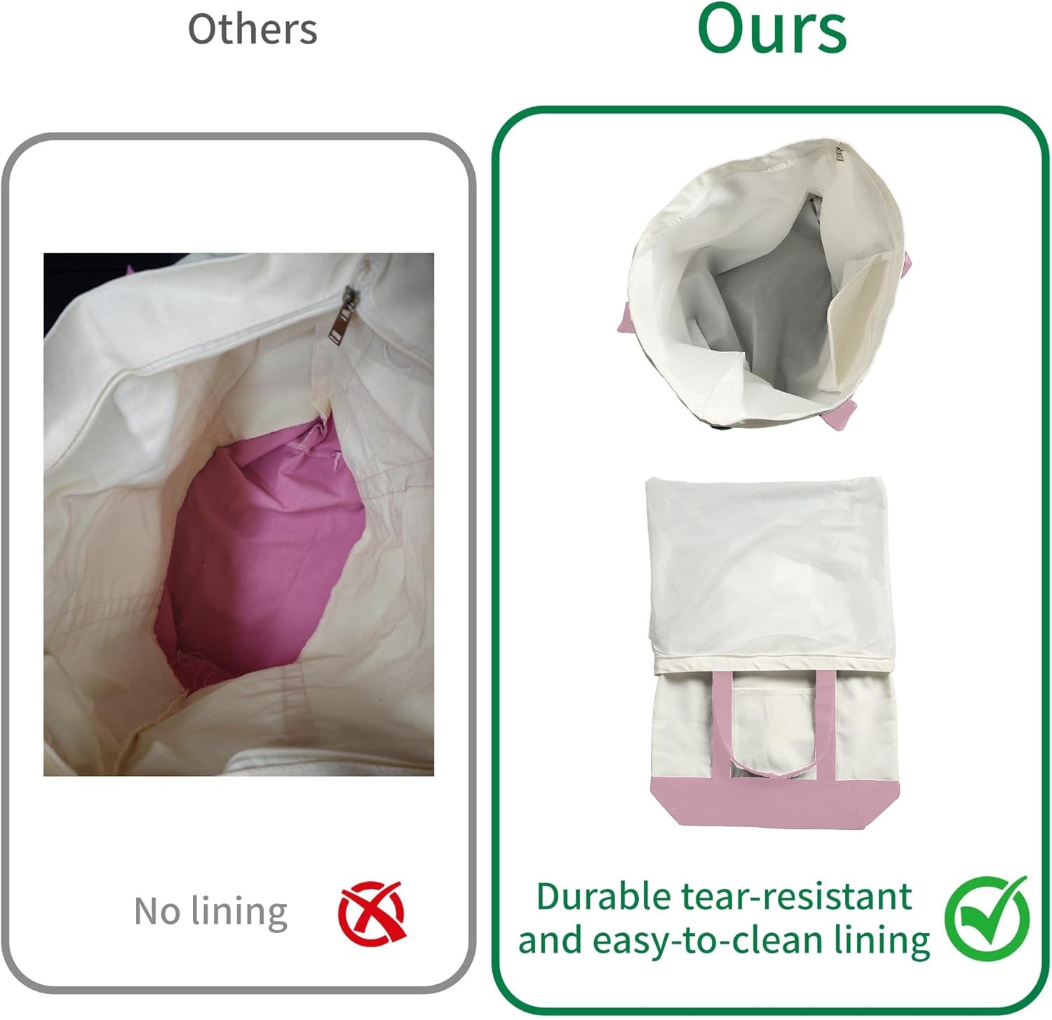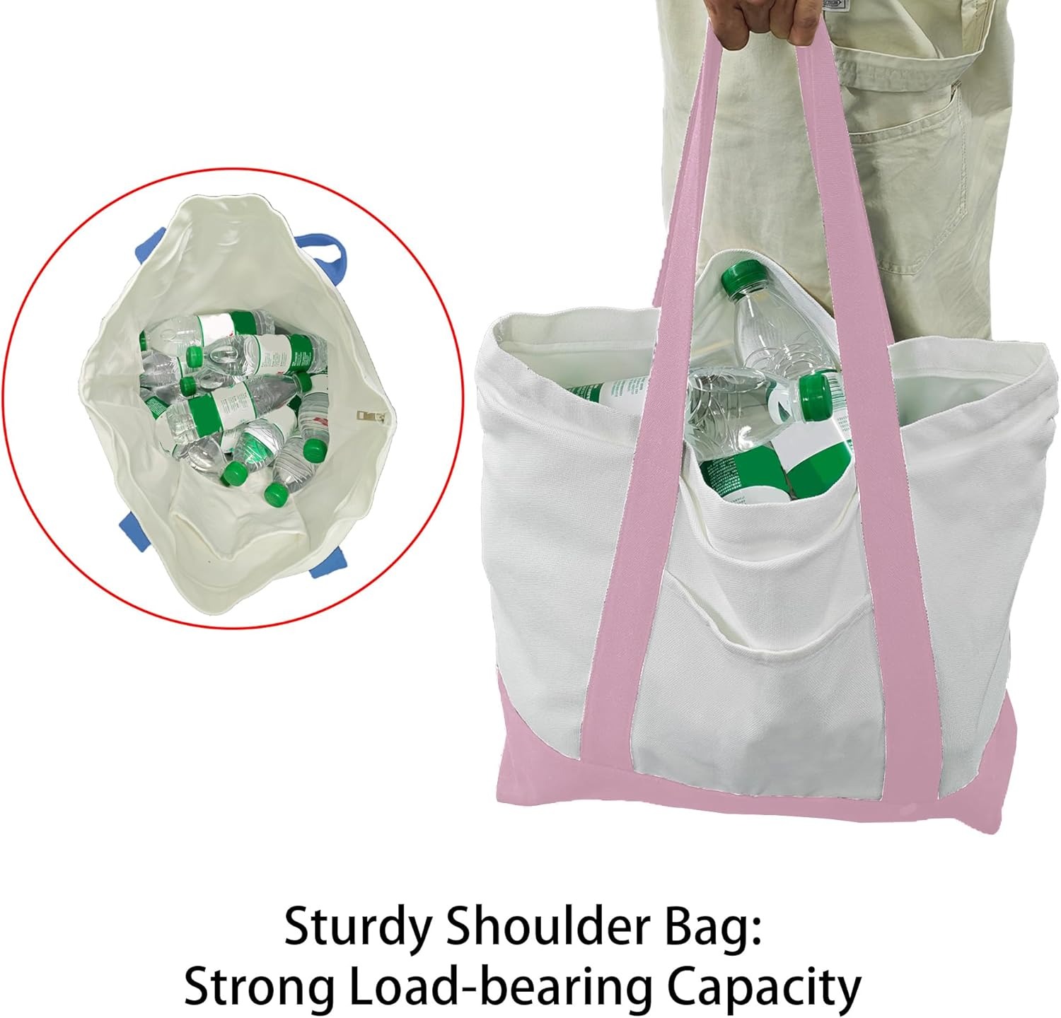 Extra Large Canvas Tote Bag for Women Reusable Grocery Shopping Bag with lining, Wider Shoulder Straps, Zipper