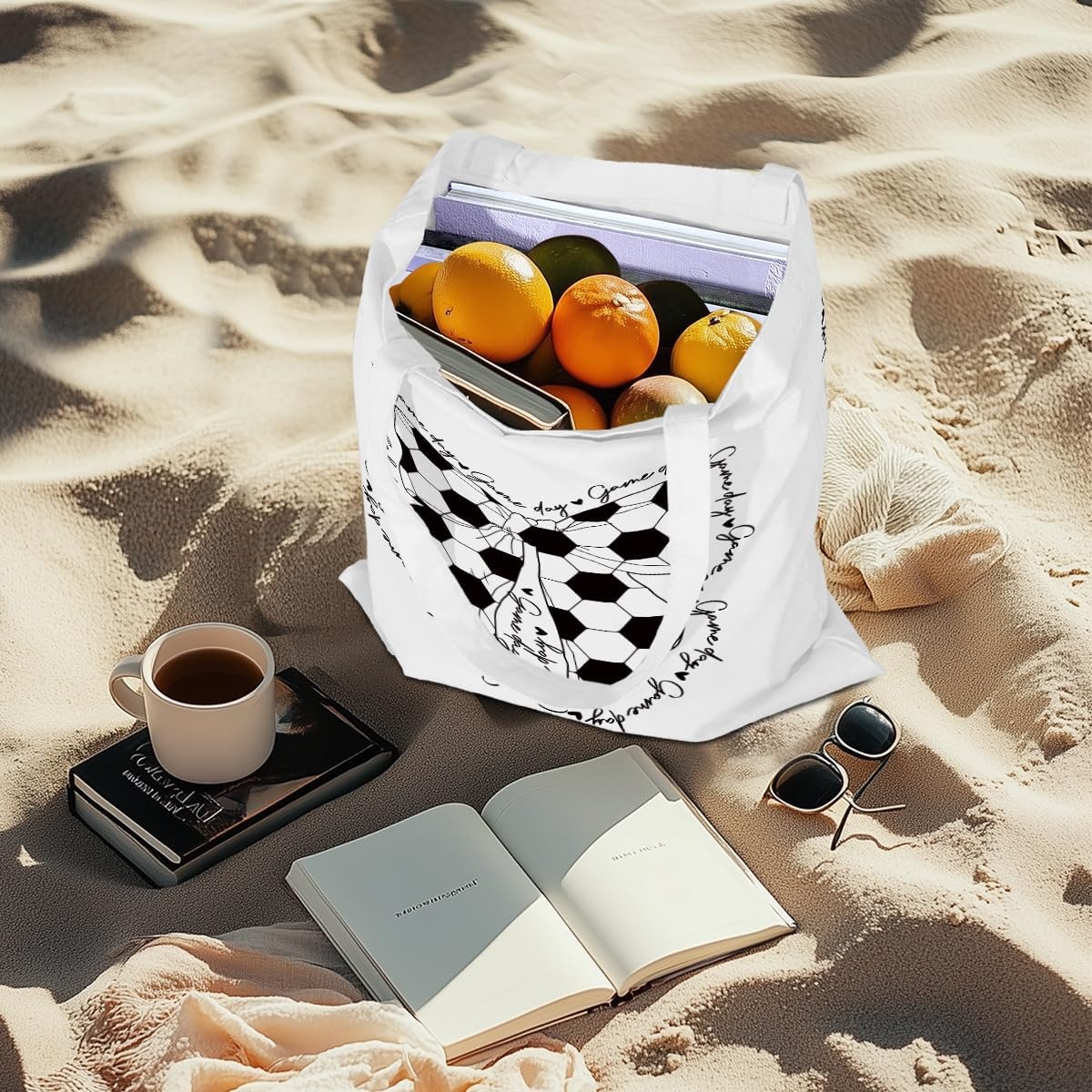 GHUSDFM Bow Basketball Soccer Softball Tennis Volleyball Football Canvas Tote Bag Gifts for Women Reusable Grocery Bags