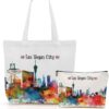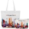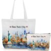 jeilink Las Vegas New York Chicago Paris Canvas Tote Bag Makeup Bag Set for Work Shopping Travel Birthday Christmas
