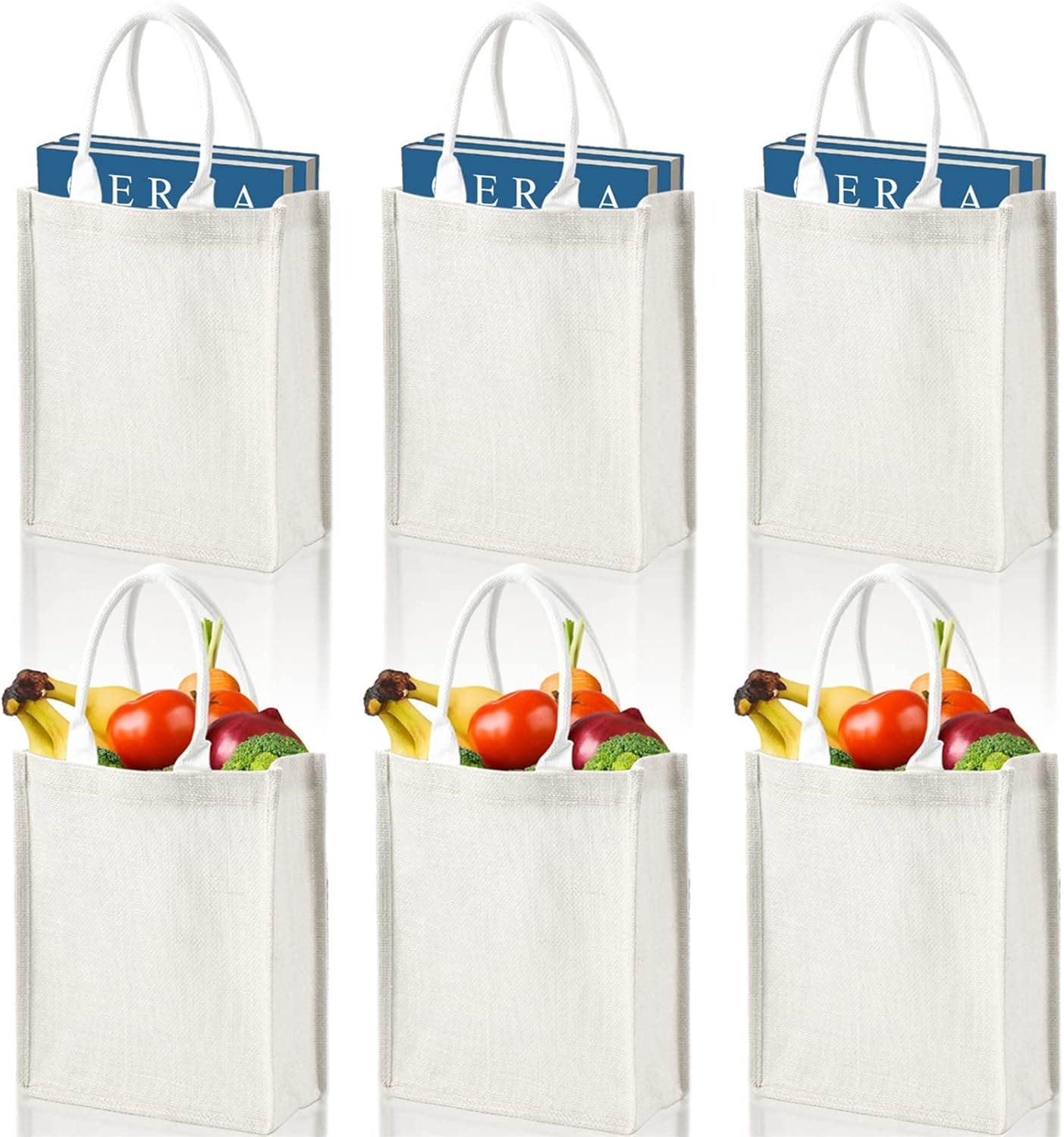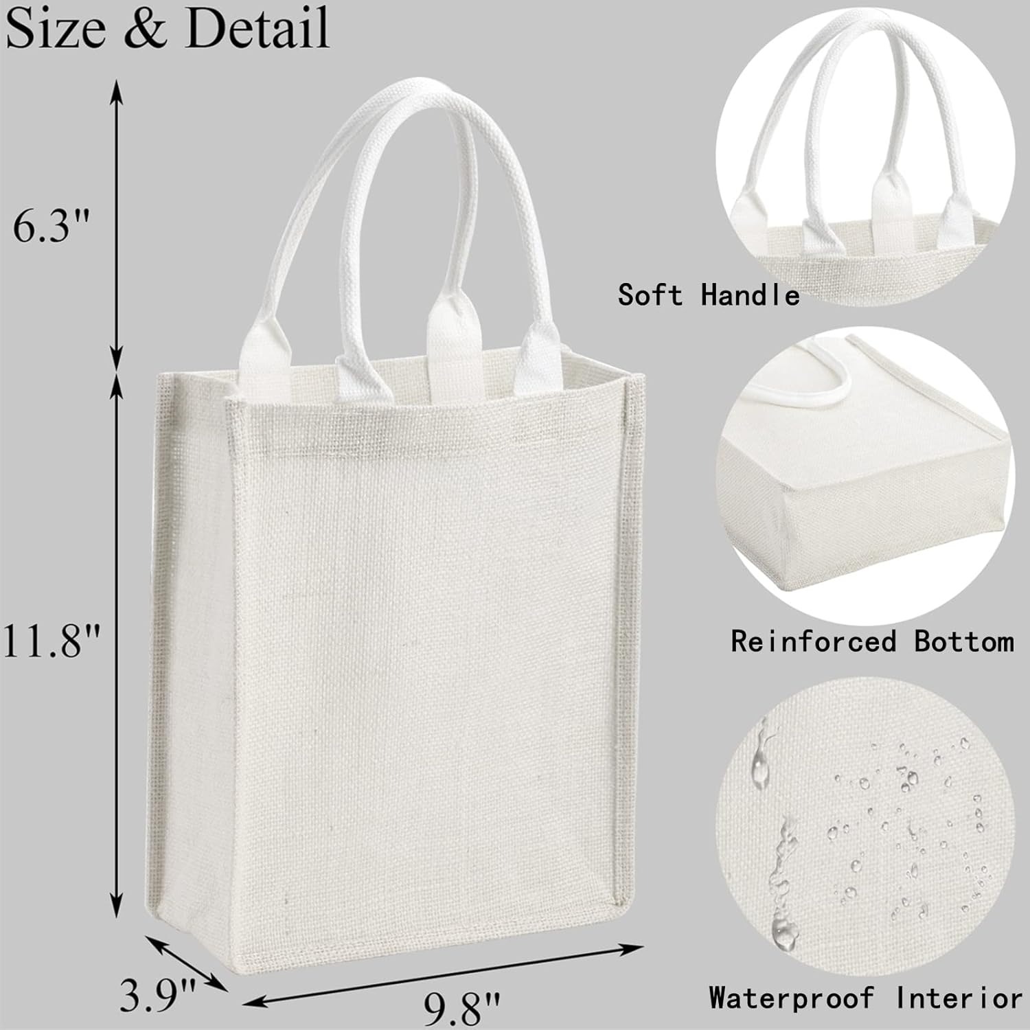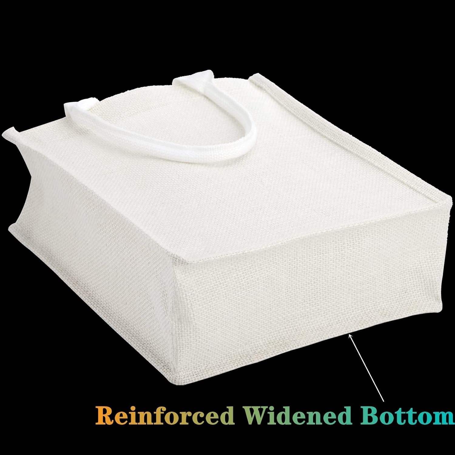 Jute Burlap Tote Bag, Burlap Gift Bag with Handle, Jute Beach Tote Laminated Interior, Reusable Lined Grocery Shopping Bag for Bridesmaid, DIY, Wedding, 9.8”x11.8”x3.9”, White