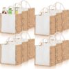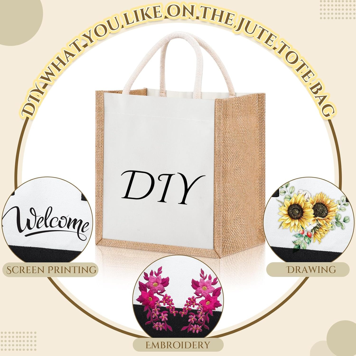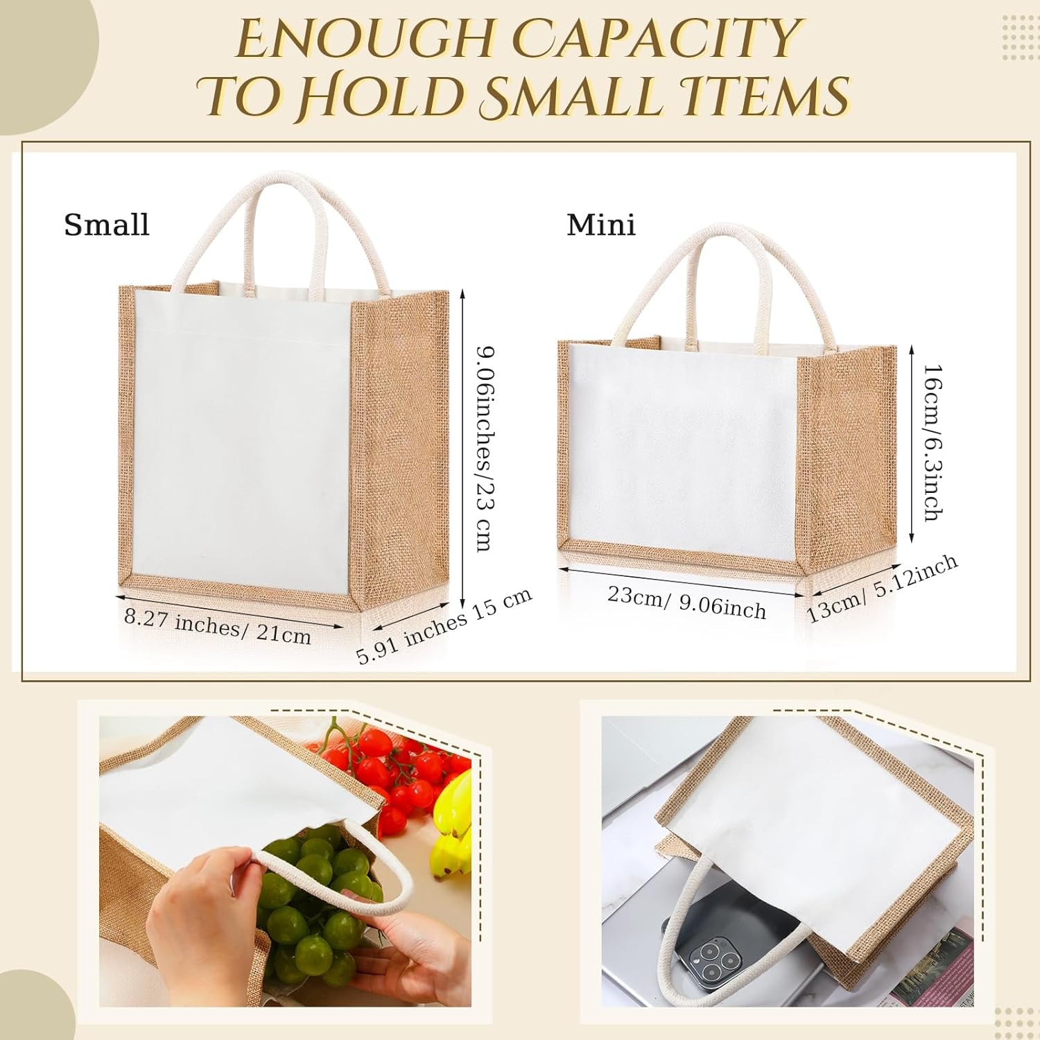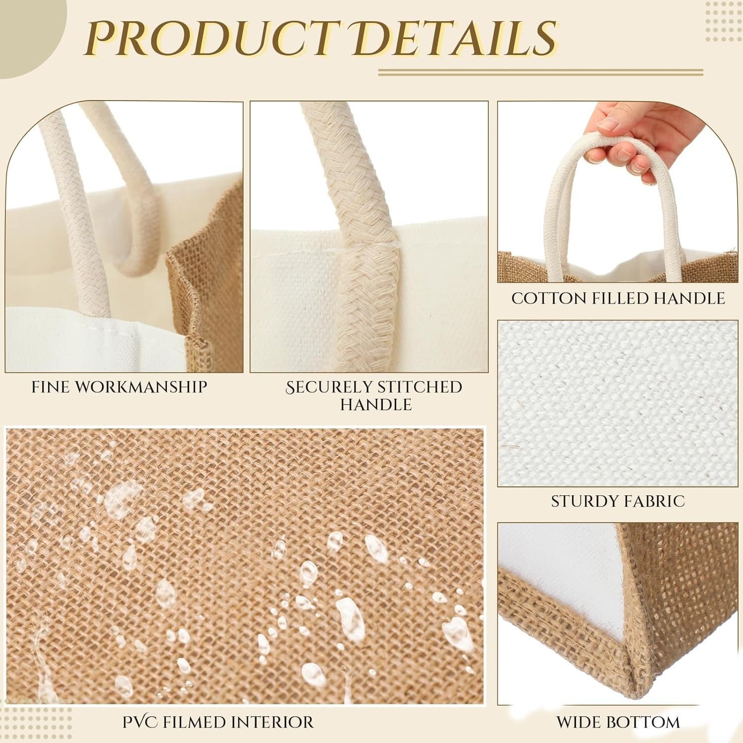 Jute Travel Tote Bags Set of 6 Burlap Tote Bags with Button Jute Bags with Handle Resuabale Grocery Bag Bridesmaid Bags Tote Bag for DIY, Shopping, Beach,Wedding