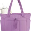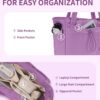 Nature Canvas Tote Bag with Cup Holder & Laptop Compartment & Trolley Sleeve for Travel, Work, Nurse, Women