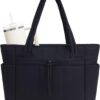 Nature Canvas Tote Bag with Cup Holder & Laptop Compartment & Trolley Sleeve for Travel, Work, Nurse, Women