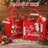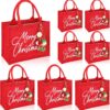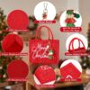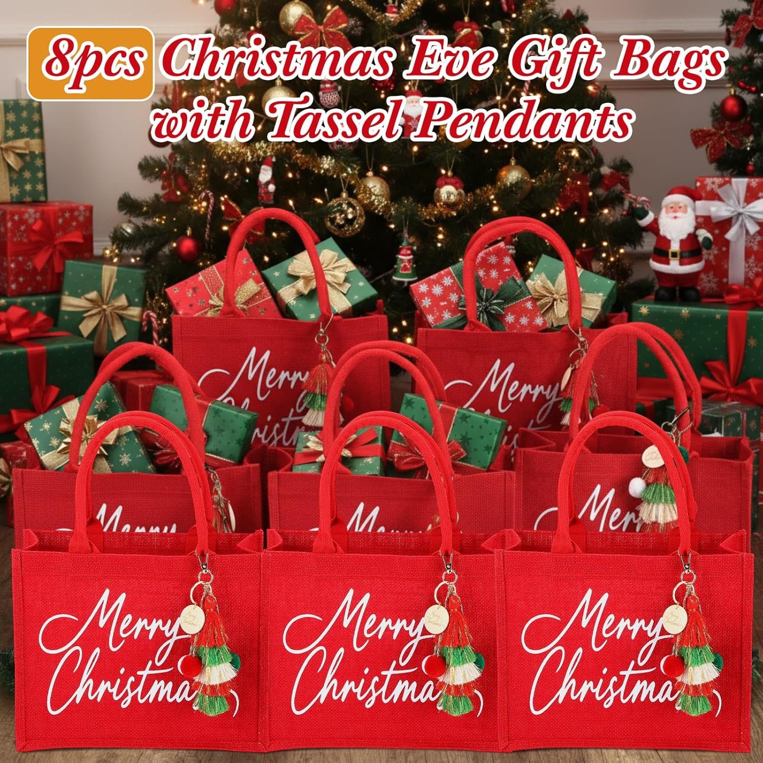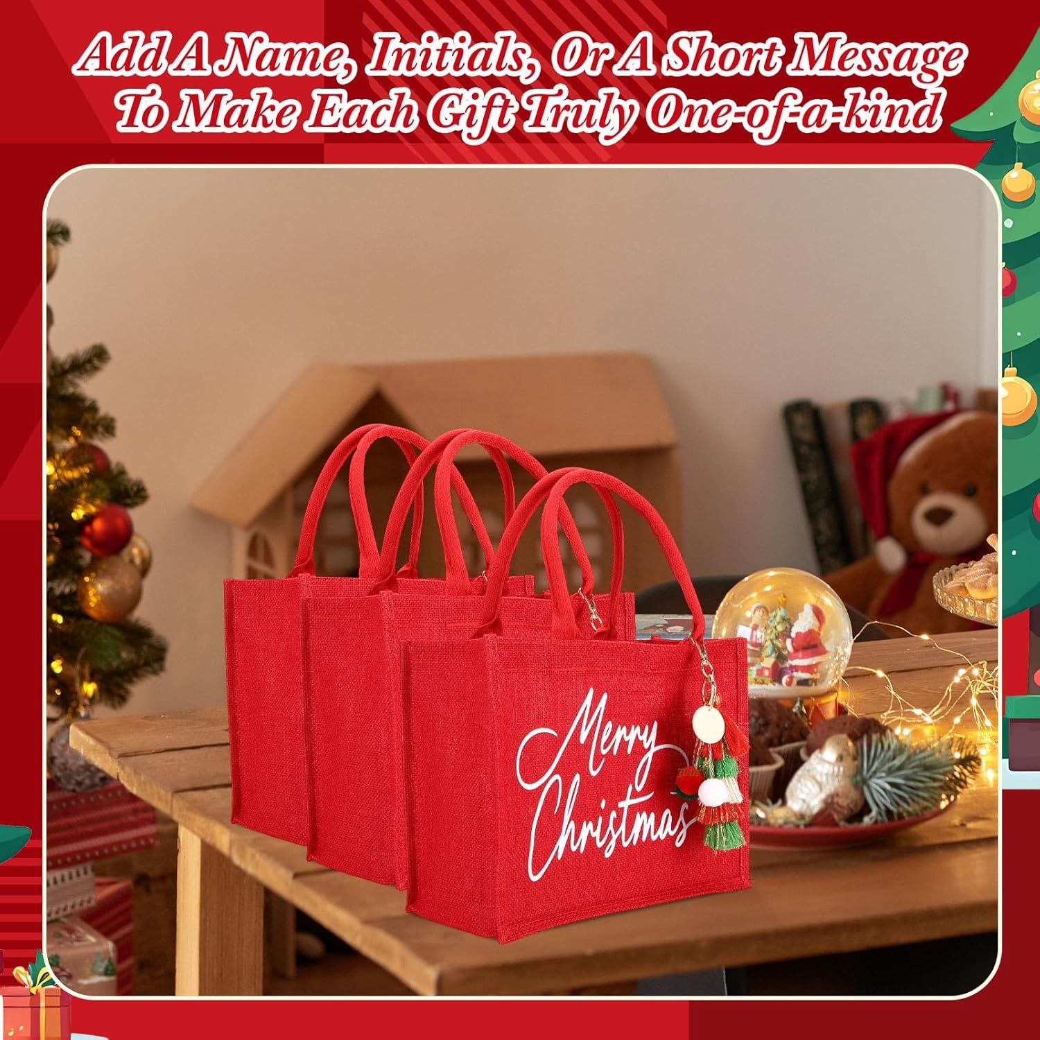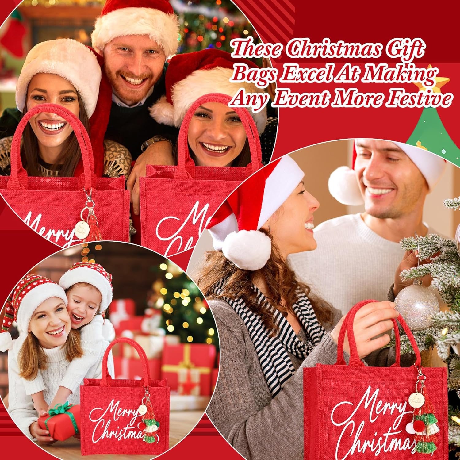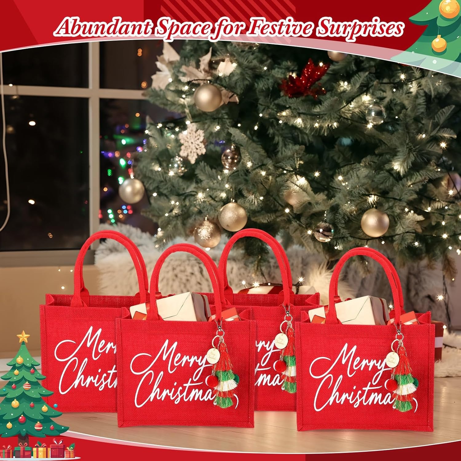 Personalized Large Christmas Bags with Handles Xmas Red Reusable Burlap Tote with Tassel Pendant Keychains Merry Christmas Bags for Women Xmas Holiday Present 12.2 x 9.84 x 5.91 Inch