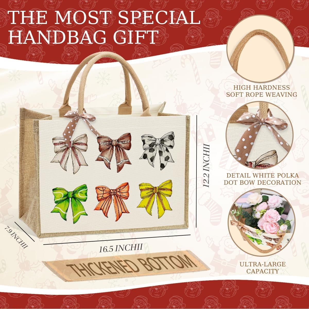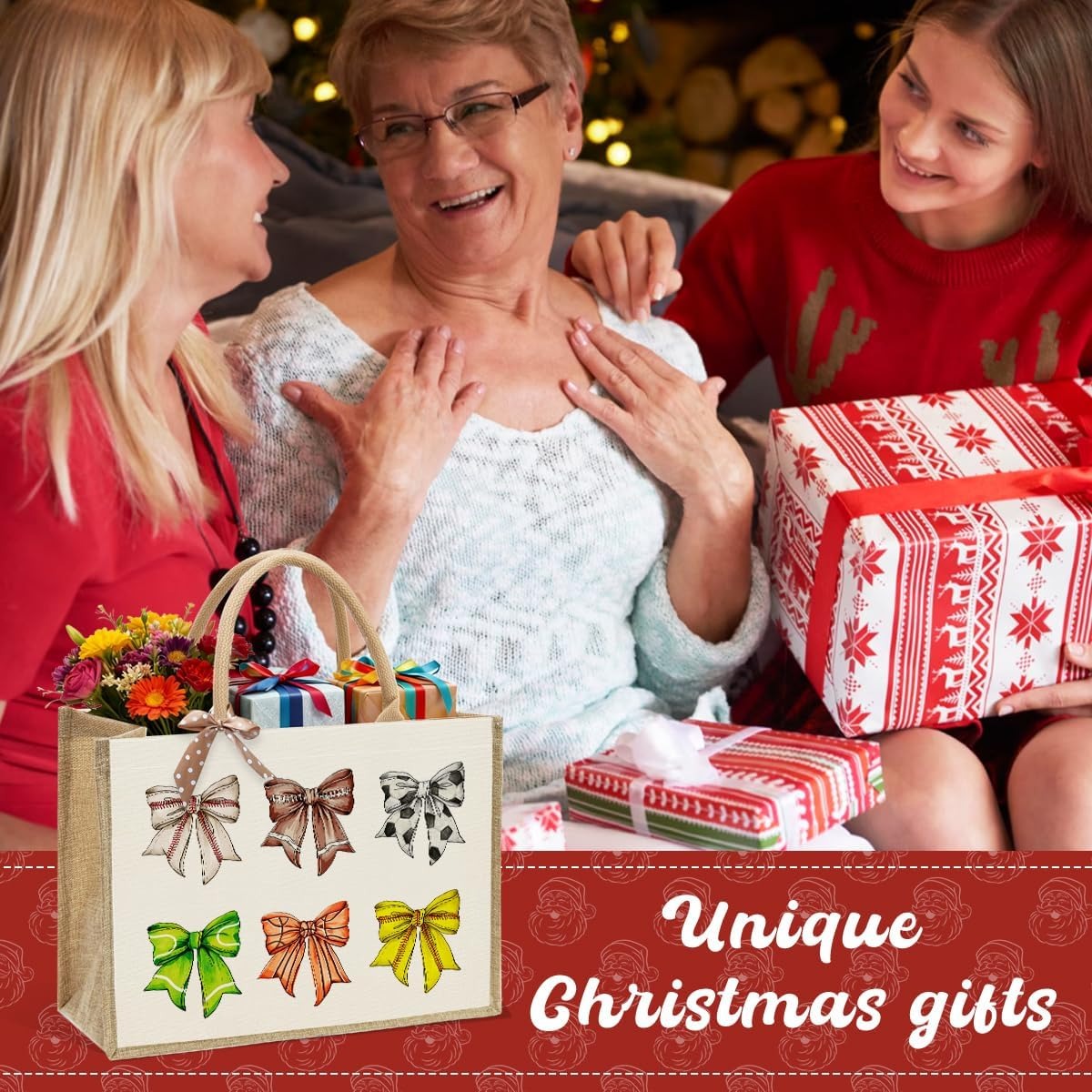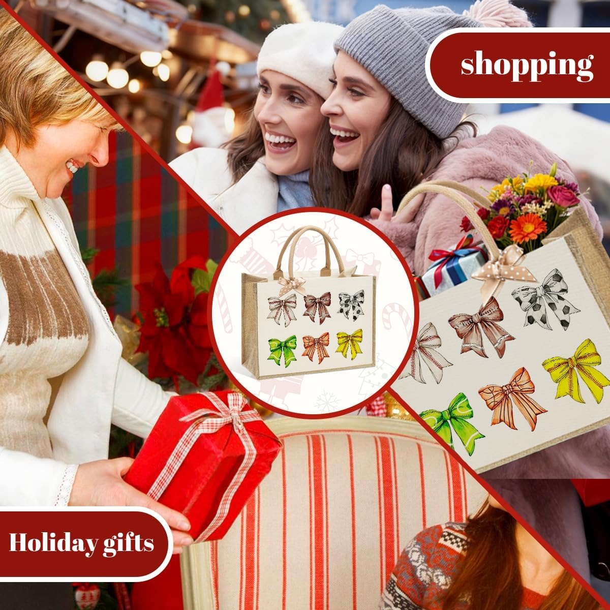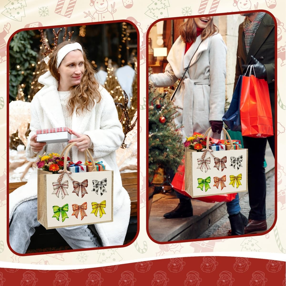 Reusable Crafted jute-canvas Tote Bag for Christmas Thanksgiving Birthday Gifts, Party Favors Storage, 16.5×12.2×7.9 Inches