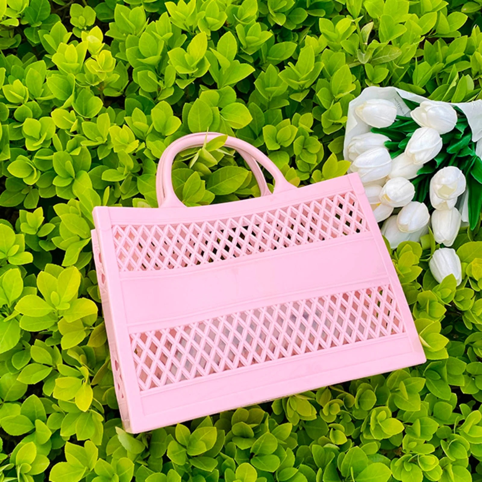 Shopping Basket Portable Jelly Bag Large Capacity Storage Candy Color Hollow Beach Fashion Big Pvc Shopping Tote Rubber Silicone Bag