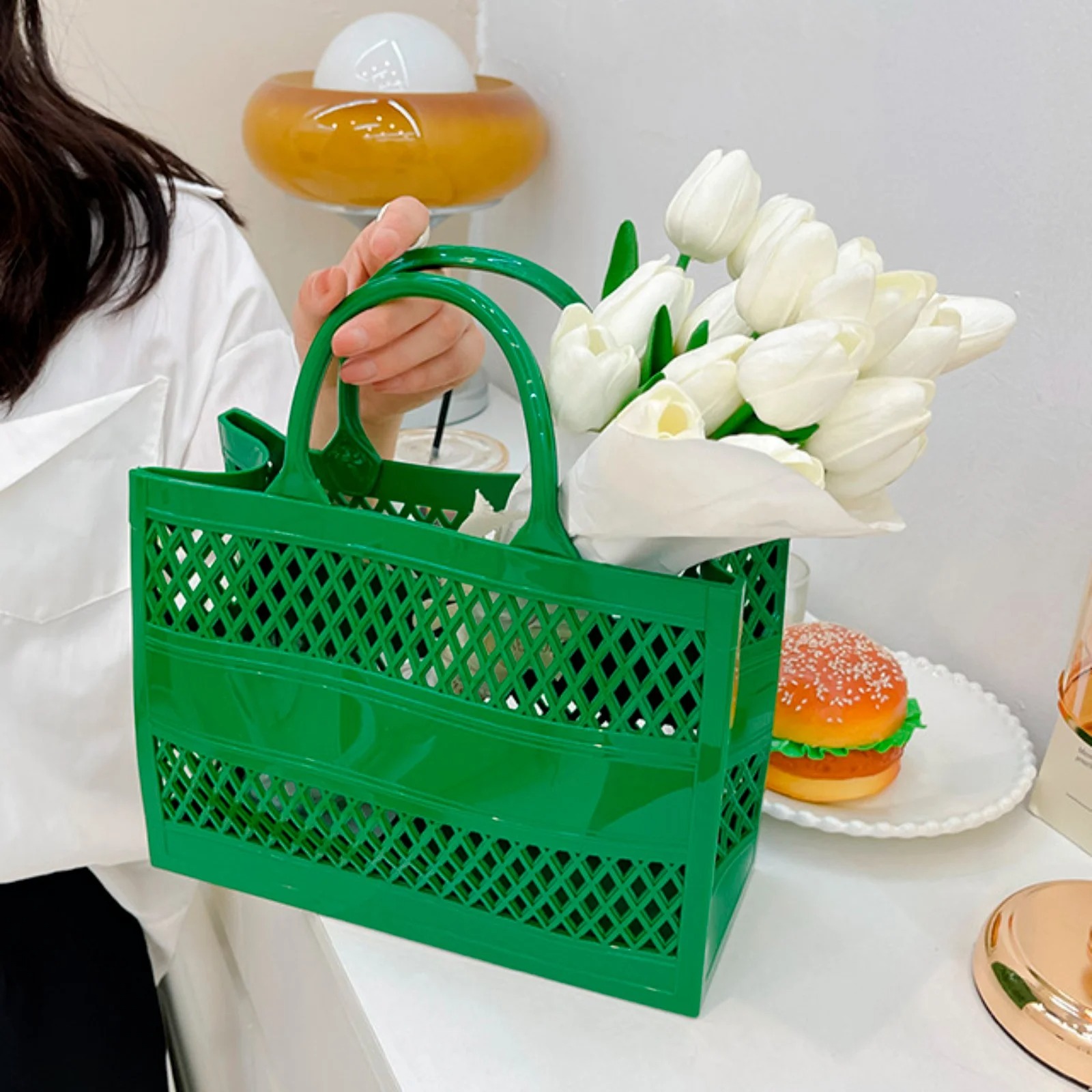 Shopping Basket Portable Jelly Bag Large Capacity Storage Candy Color Hollow Beach Fashion Big Pvc Shopping Tote Rubber Silicone Bag