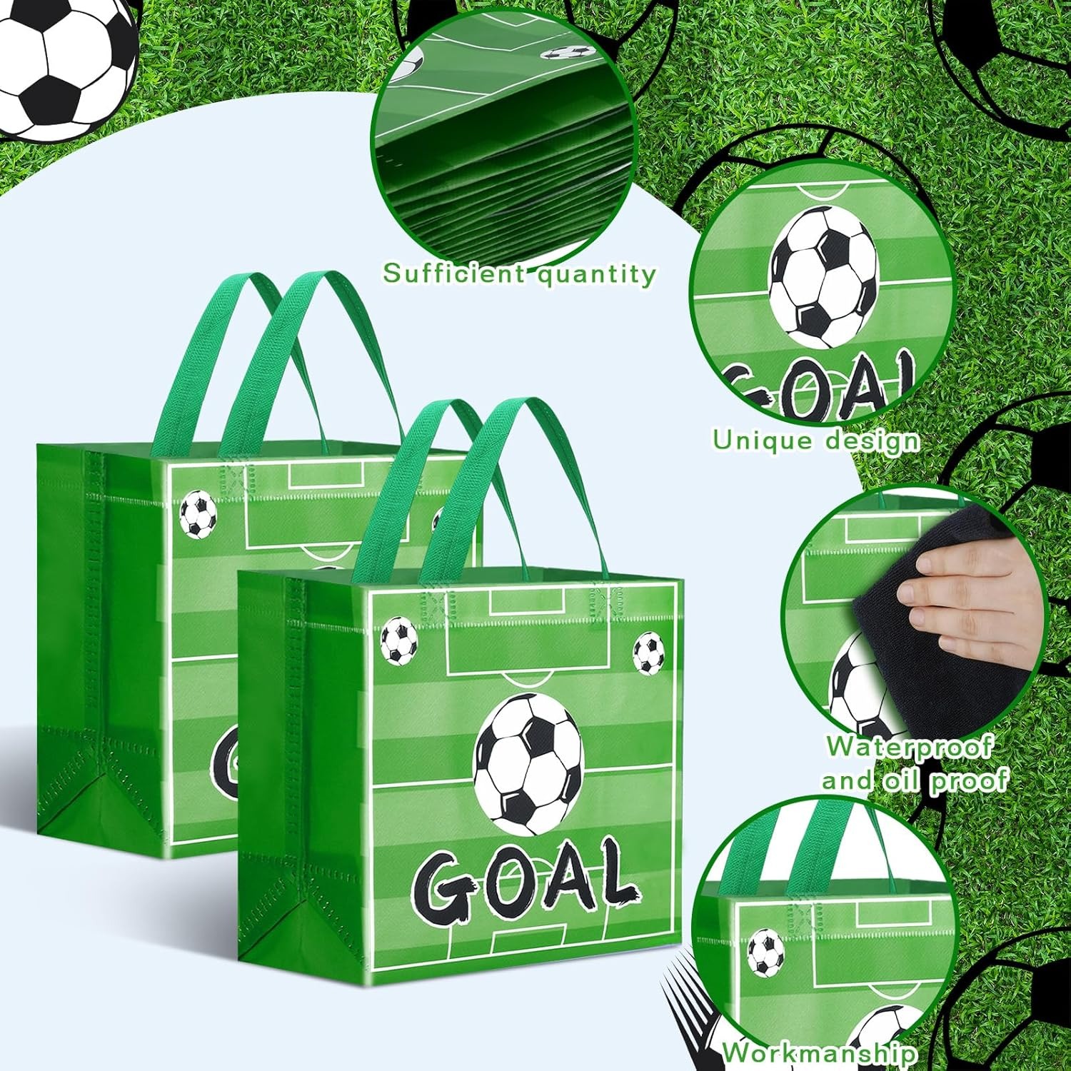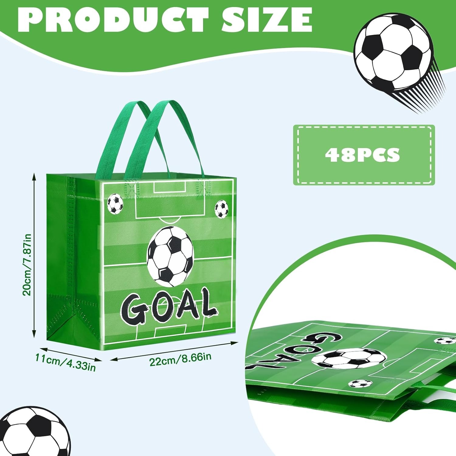 / SilTriangle 48 Pcs Soccer Party Favor Bags Soccer Treat Bags Reusable Gift Handbag with Handle Sports Ball Theme Goodie Candy Snack Handbag Birthday Party Favors(Exquisite Style)