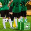 SilTriangle 48 Pcs Soccer Party Favor Bags Soccer Treat Bags Reusable Gift Handbag with Handle Sports Ball Theme Goodie Candy Snack Handbag Birthday Party Favors(Exquisite Style)