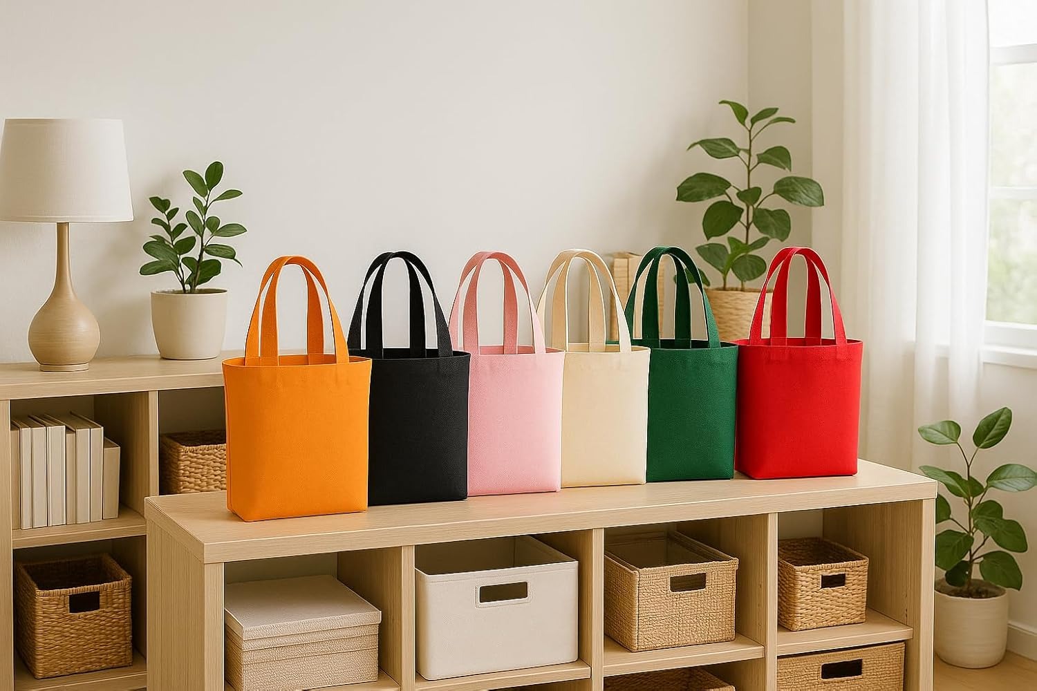 Small Canvas Tote Bag, 6 Colors Gift Bags for Holidays, Birthdays, Christmas, DIY Printing