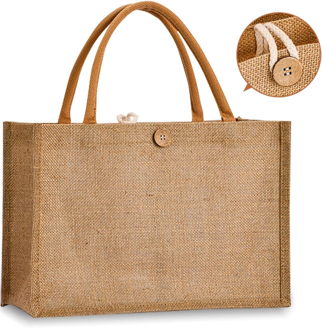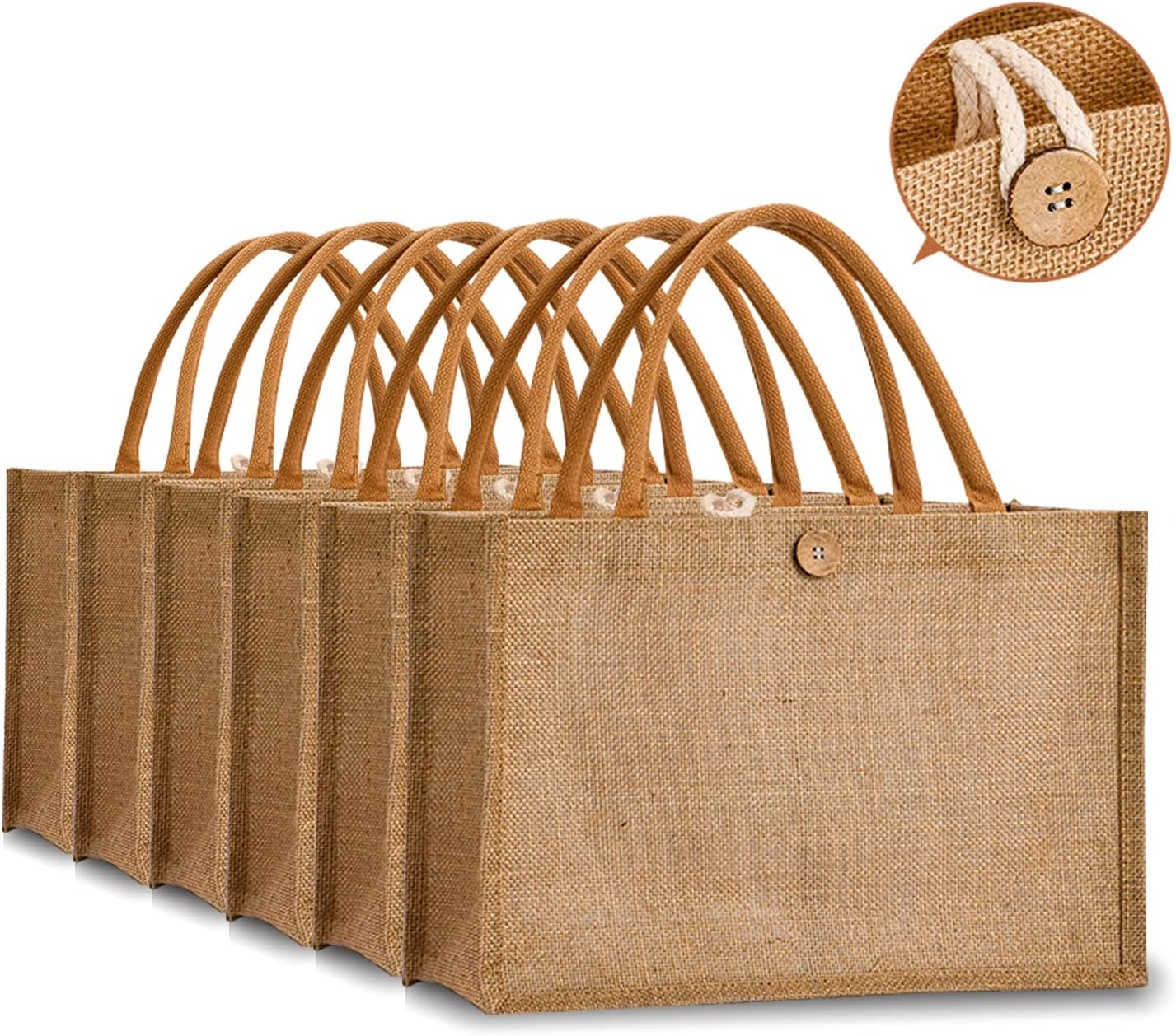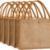 Small Reusable Tote Bags Natural Jute Christmas Gift Bags with Cotton Handles Tote Bags Wedding Bridesmaid Favors Burlap Bag Embroidery DIY Art Crafts Print Decoration,12.6″x8.3″x5.2″Pack (复制)