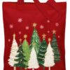 Whaline Christmas Canvas Tote Bag Xmas Tree Snowflake Grocery Shopping Bag Red Reusable Gift Goodie Bags for Winter Holiday Party Supplies, 13.4 x 15.7 Inch