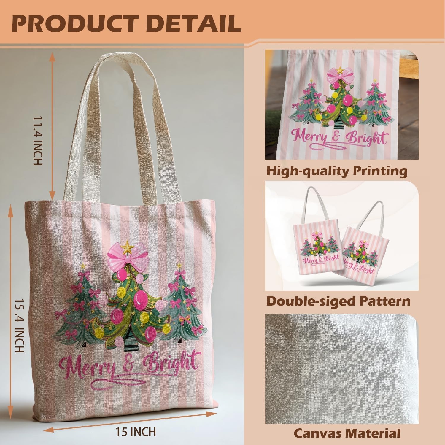 Wholesale Custom Printed Logo Cotton Canvas Tote Bag Blank Pain Shoulder Shopping Bag with Ribbon Handle and Zipper Pocket