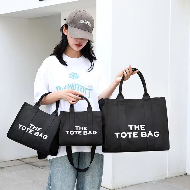 Women’s casual canvas letter handbag, solid color crossbody bag with zipper seal, single-shoulder underarm bag