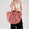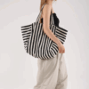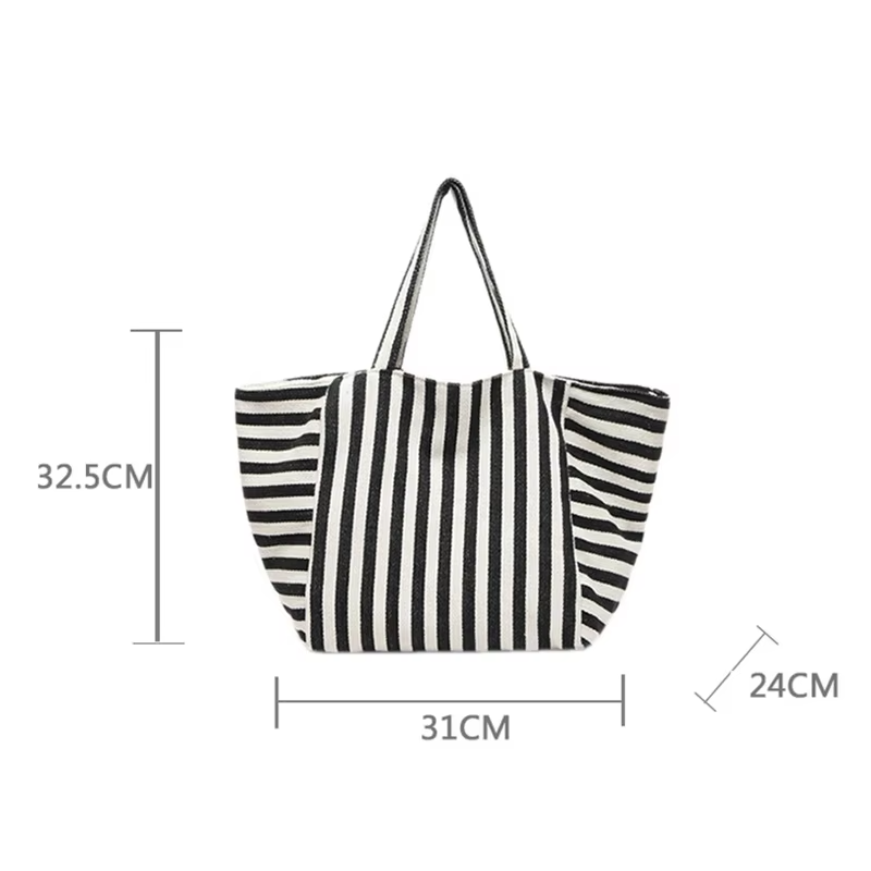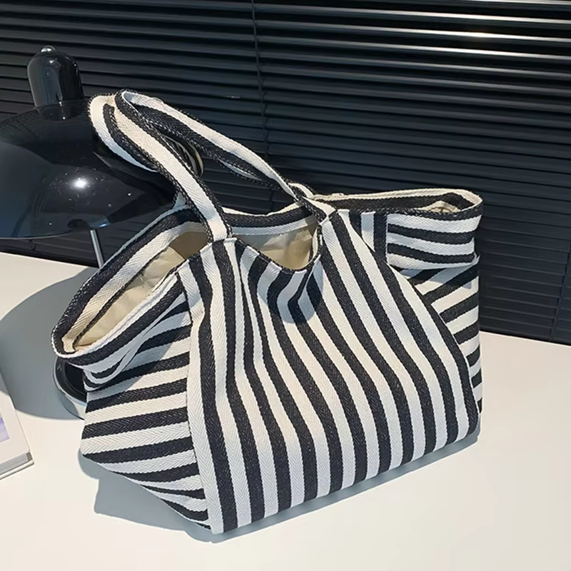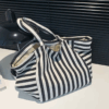 Women’s fashionable commuting bag for daily shopping and travel, large capacity, striped canvas handbag with simple design