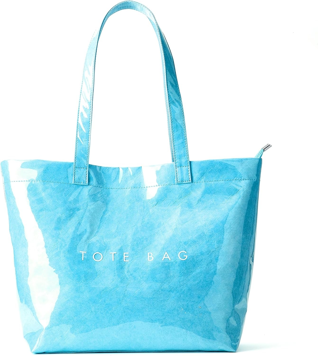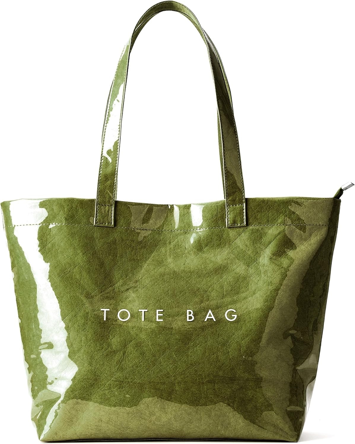 Zipper Tote Bag, Kraft Paper Beach Bag Large Hobo Carry All Travel Shopping Handbag Plastic Shoulder Bag