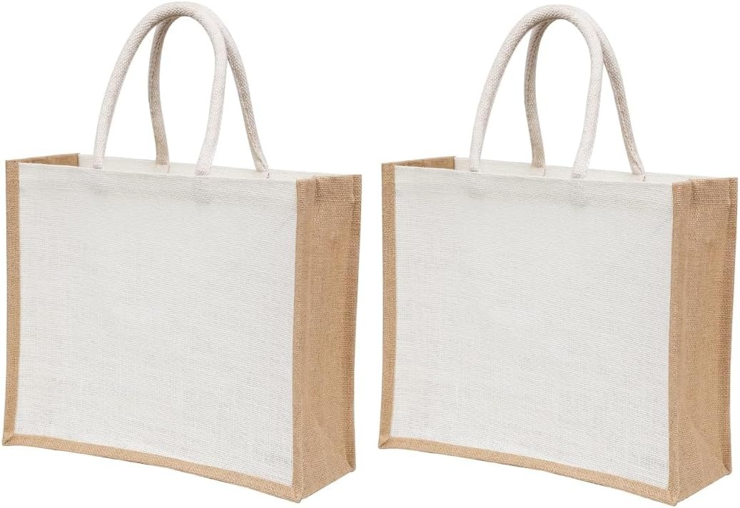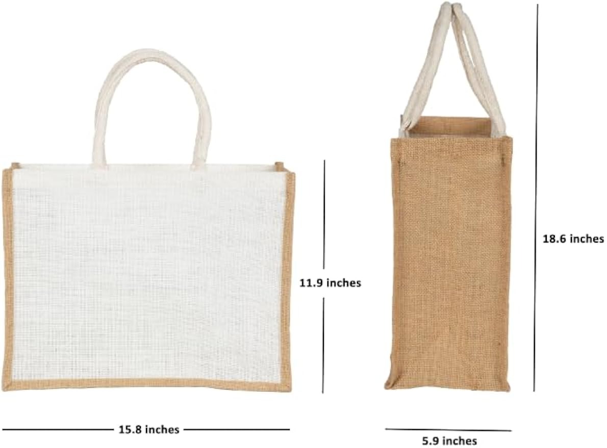 Большие многоразовые сумки из джутового мешковины — 15.8″×11.9″×5.9″, экологичные сумки для шопинга и пляжа с ручками: сумка для подарков для подружек невесты, сумки для свадебных подарков, возвратная сумка